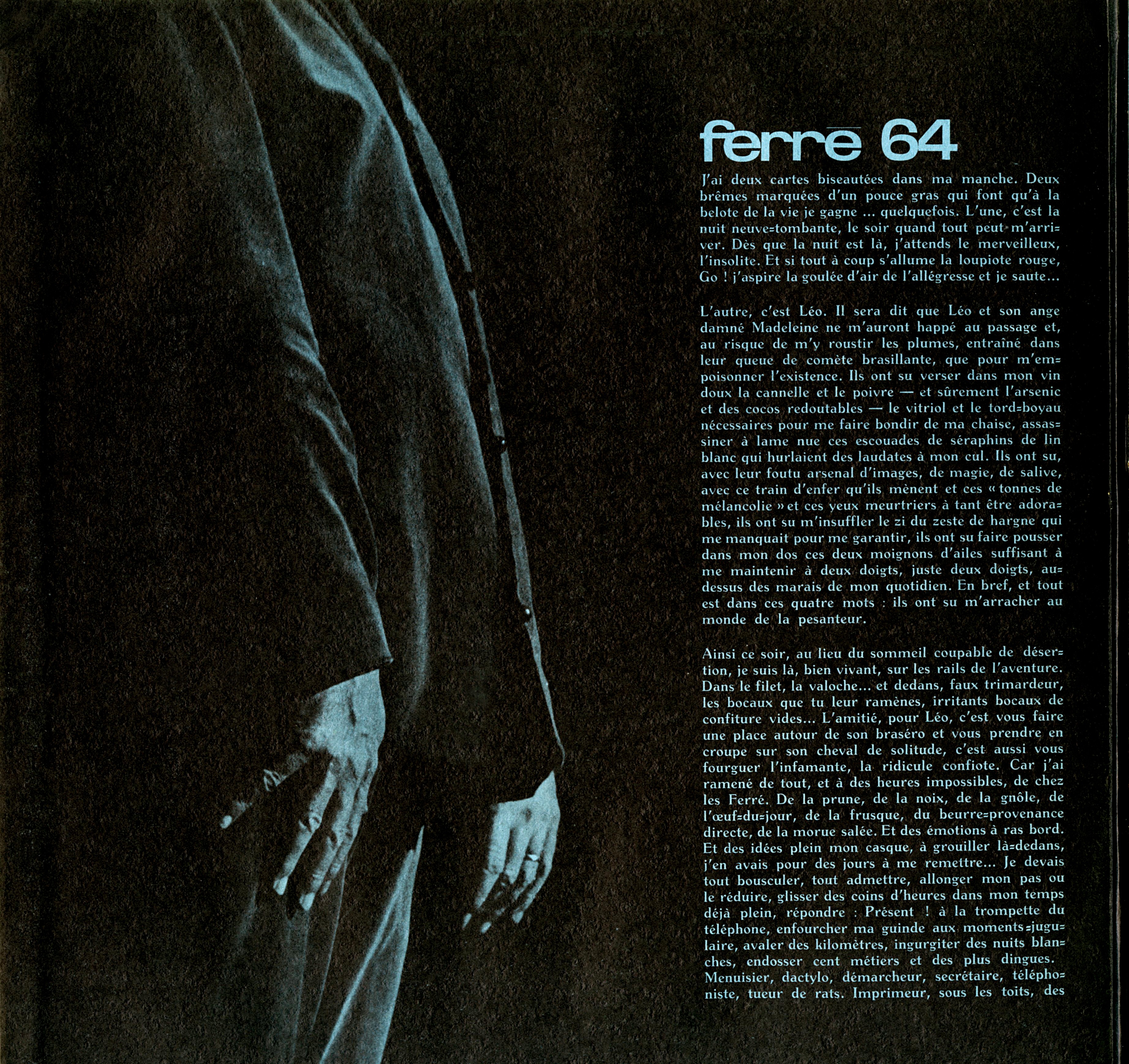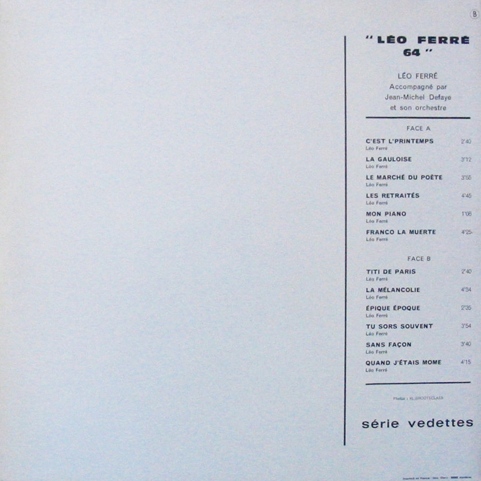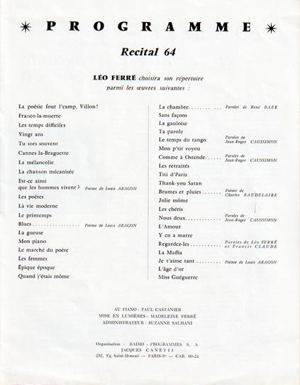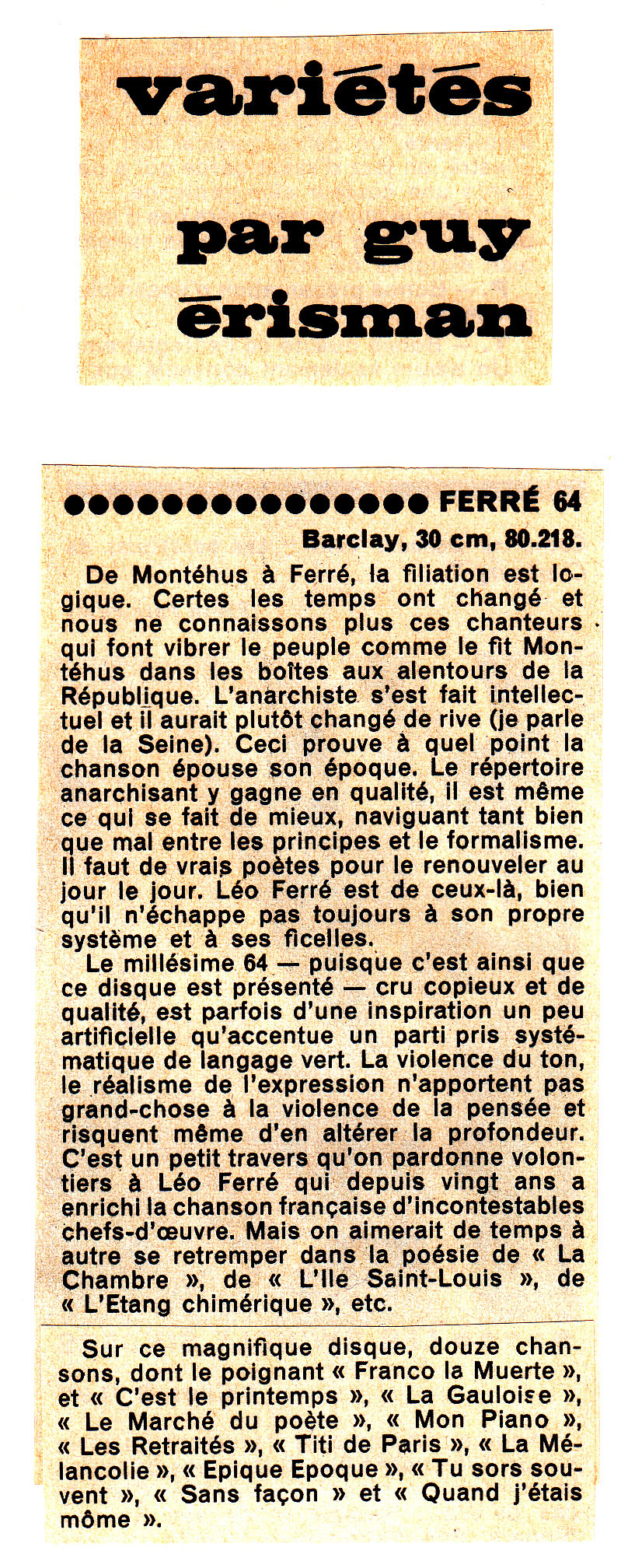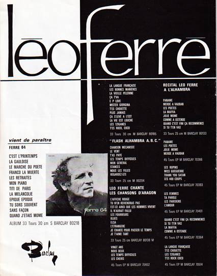 17 et 18.02 : Enregistrement chez Barclay de l’album Ferré 64 entièrement arrangé par Jean-Michel Defaye