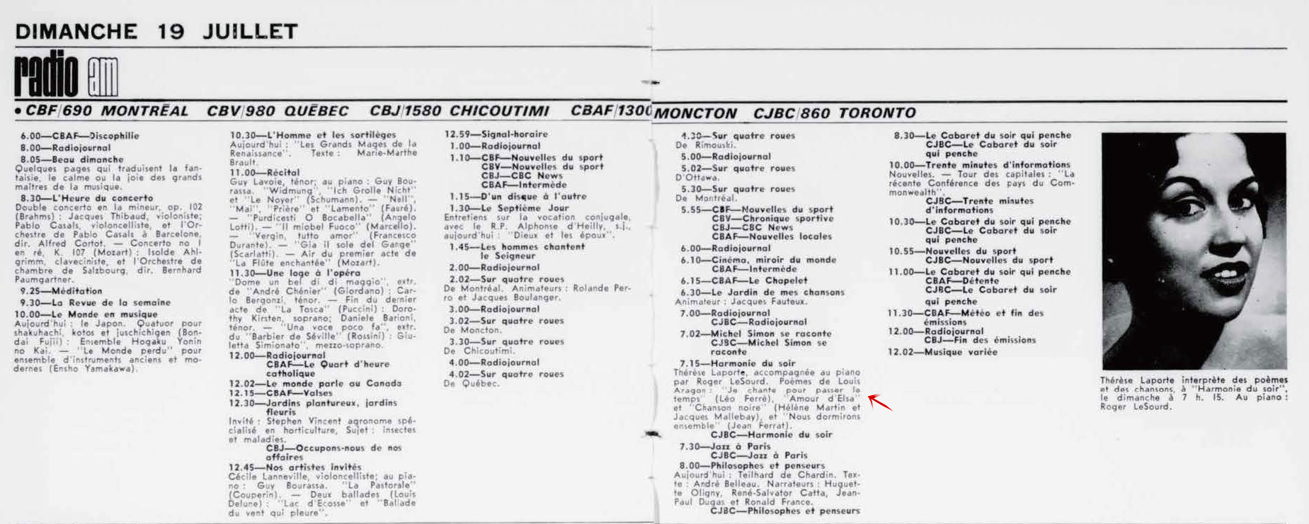 18.07 : La semaine à Radio-Canada, 1950-1966, samedi 18 juillet 1964