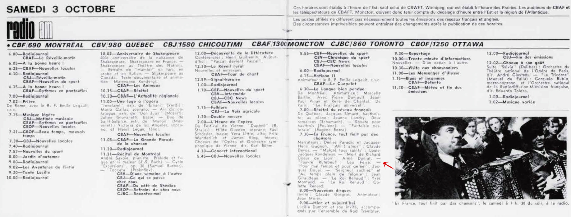 03.10 : La semaine à Radio-Canada, 1950-1966, samedi 3 octobre 1964