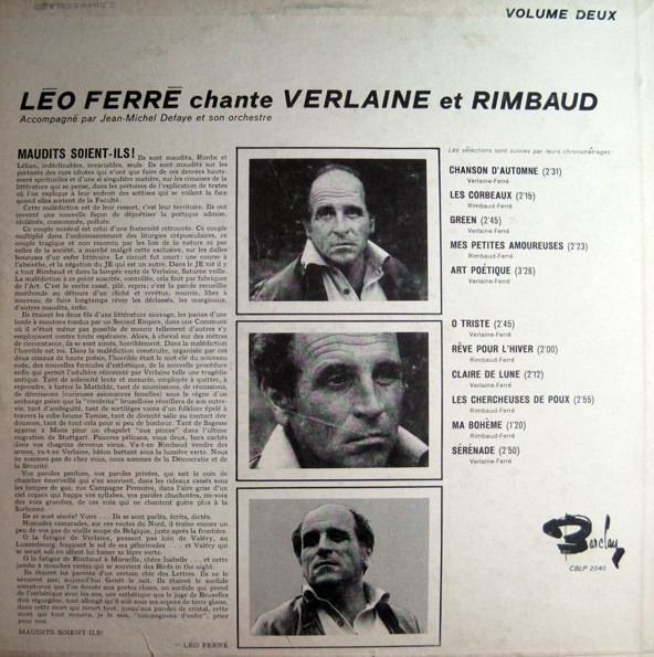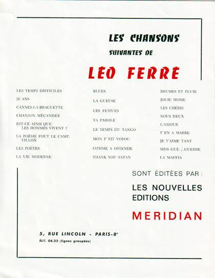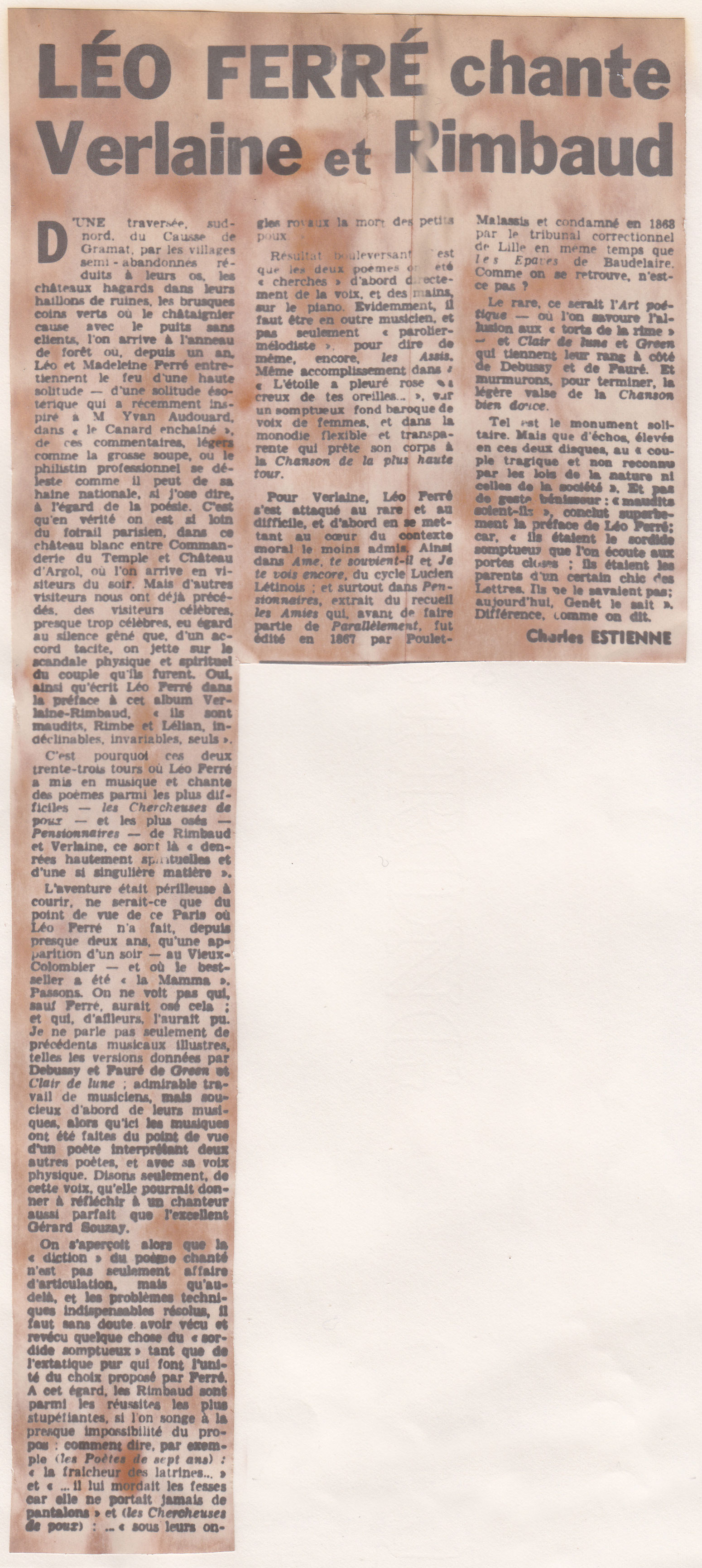 25 au 28.05 : Enregistrement chez Barclay du double album Verlaine et Rimbaud chantés par Léo Ferré