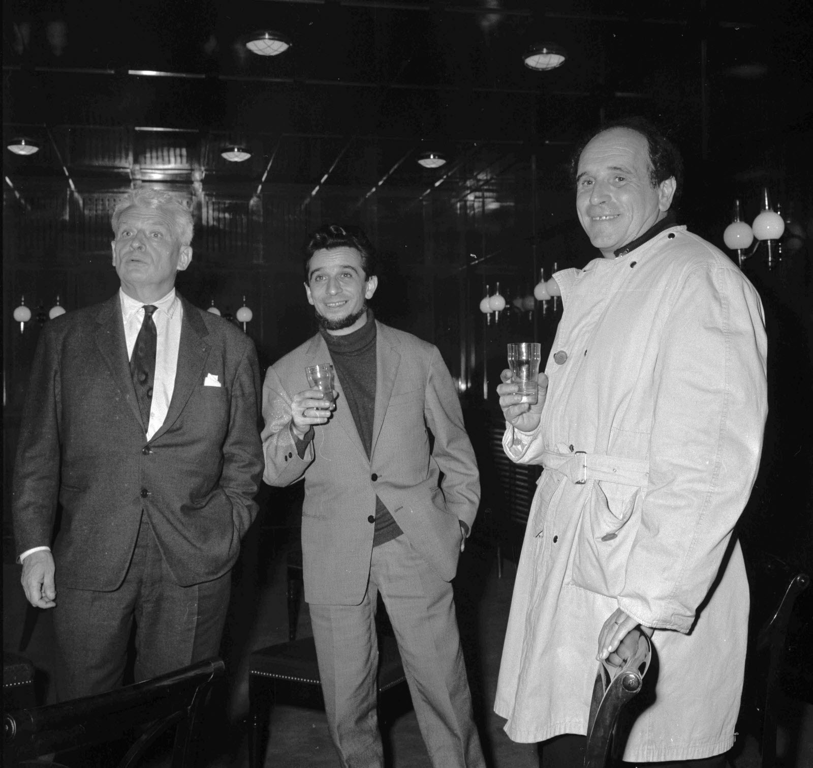 Léo Ferré avec Eddie Barclay, producteur de musique français, jouant au babyfoot.