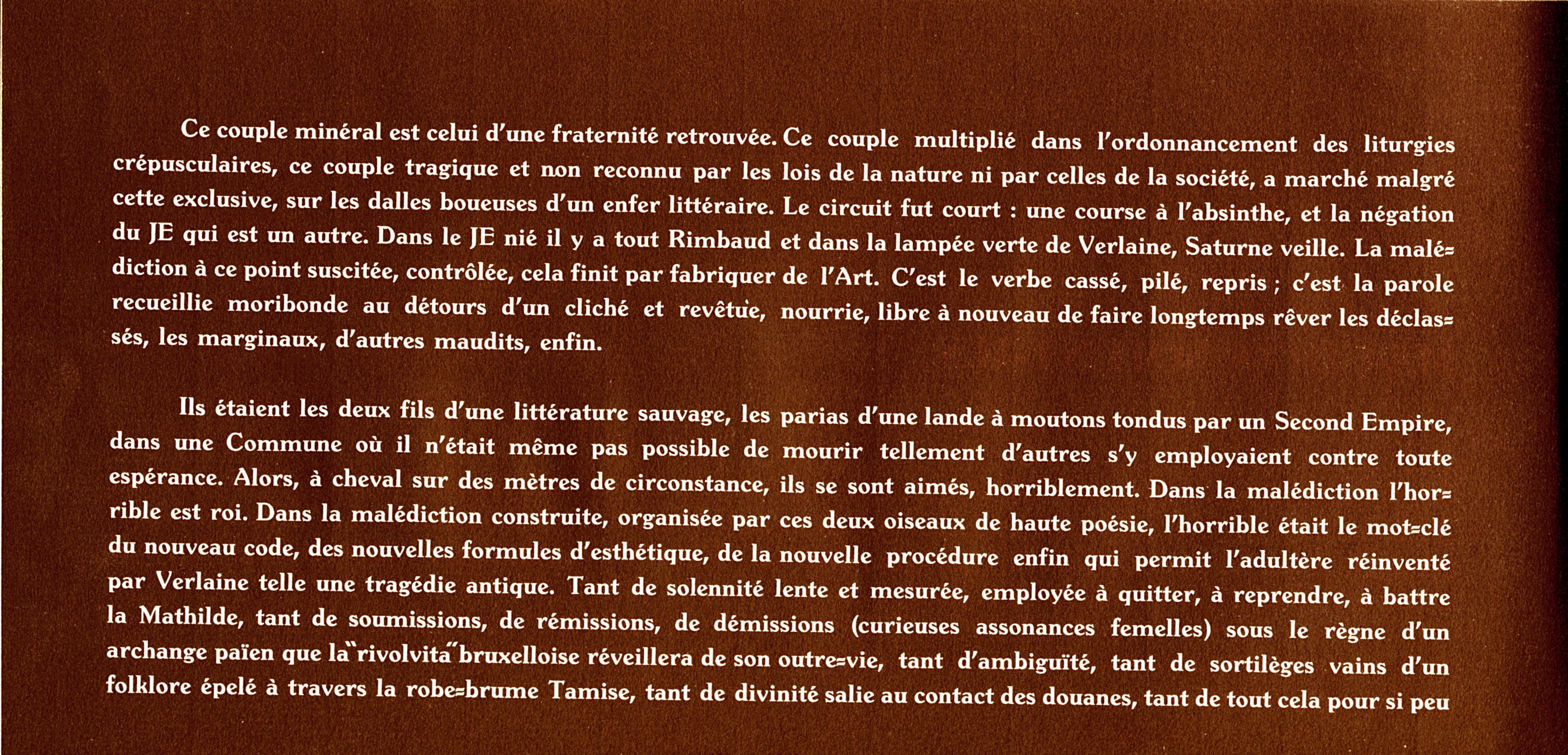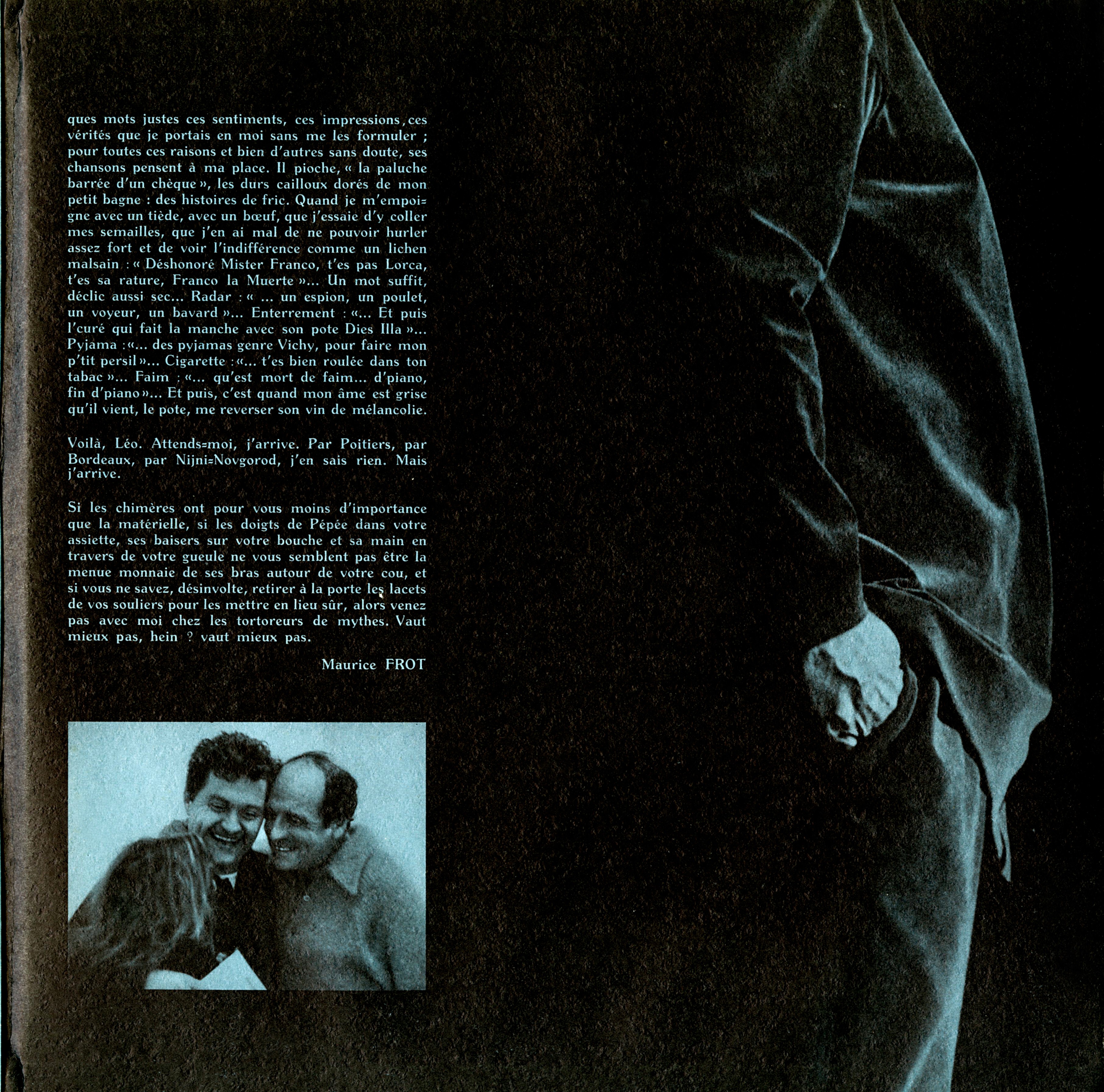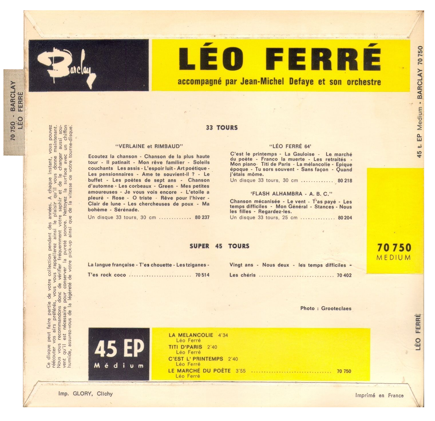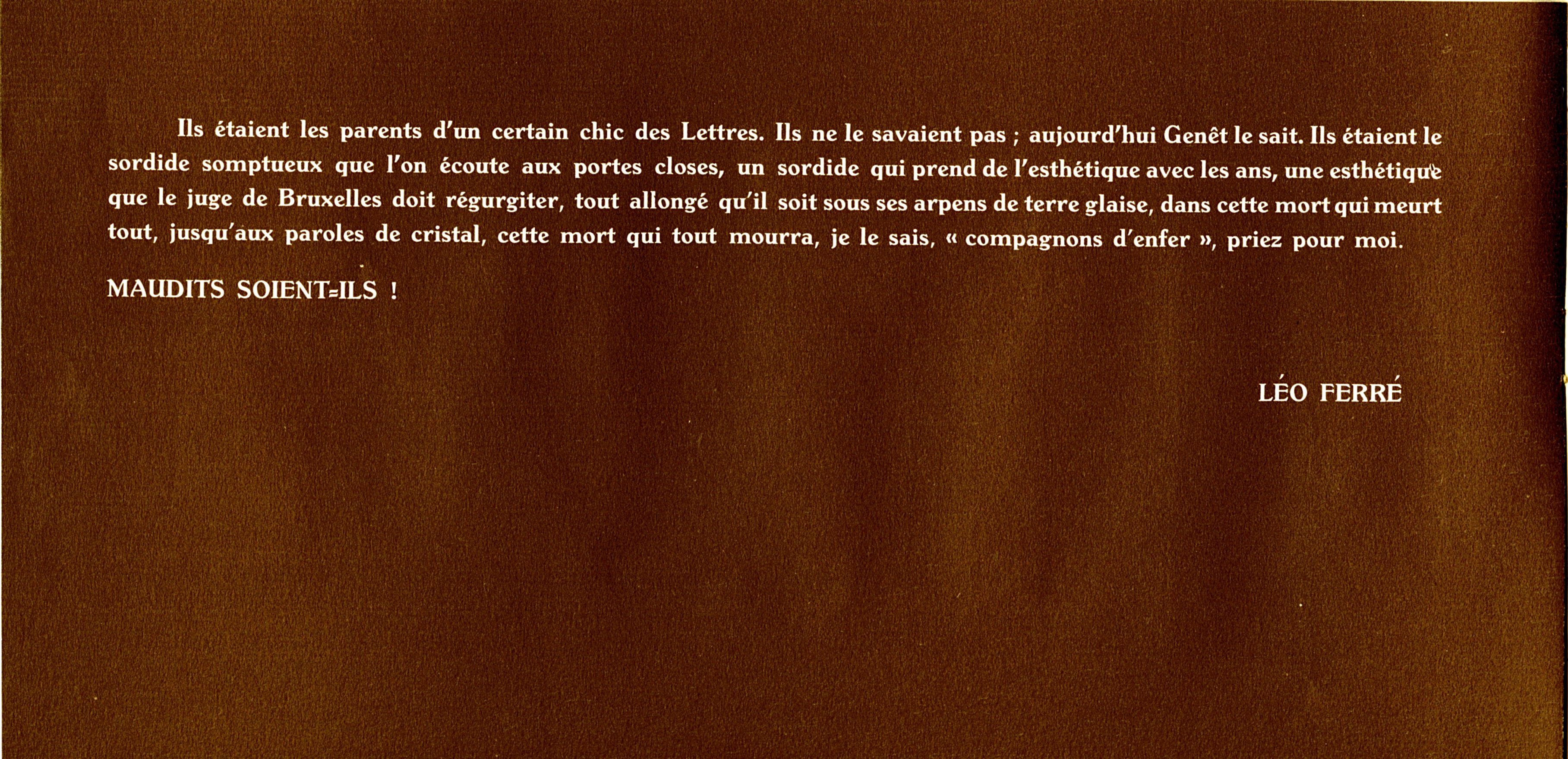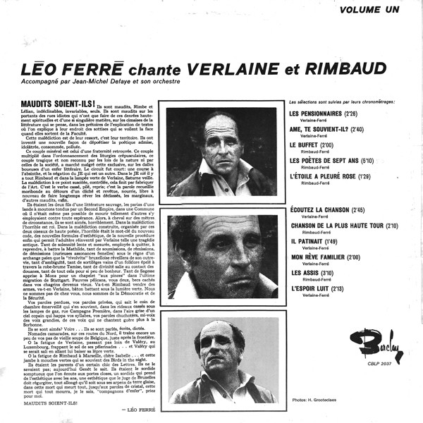 À l'imbécilité des paroliers-sic de son temps, Léo Ferré veut opposer la gifle de la poésie, et à travers elle sensibiliser le grand nombre à la beauté. Il travaille sur un ambitieux cycle Verlaine depuis l'été 1959, dans la foulée de son travail consacré à Aragon. Ce dernier rencontre le succès que l'on sait en 1961, année de tous les triomphes. Mais l'extraordinaire à l'horizon frémit ; l'espace-temps bientôt va se déplier...