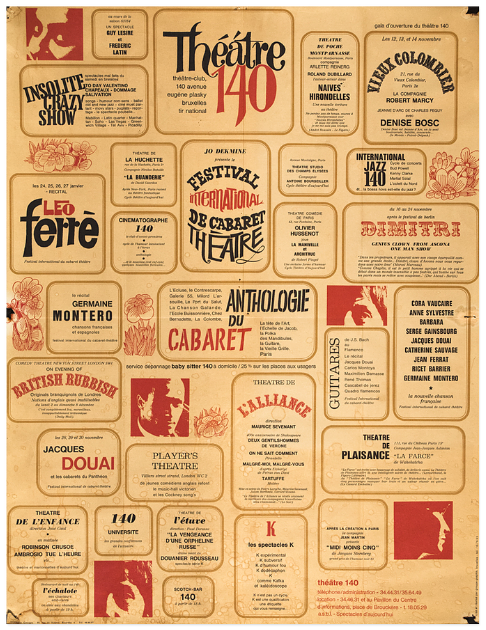 Le public y découvre Serge Gainsbourg, Dimitri le clown d’Ascona, Naïves Hirondelles de Roland Dubillard, Ferré, Barbara et ces British Rubbish qui ont marqué l’esthétique du 140 avant l’accueil du Grand Magic Circus et le psychodrame à couplets Maman, j’ai peur écrit et joué par Jacques Higelin, Brigitte Fontaine et Rufus, quelques années plus tard.