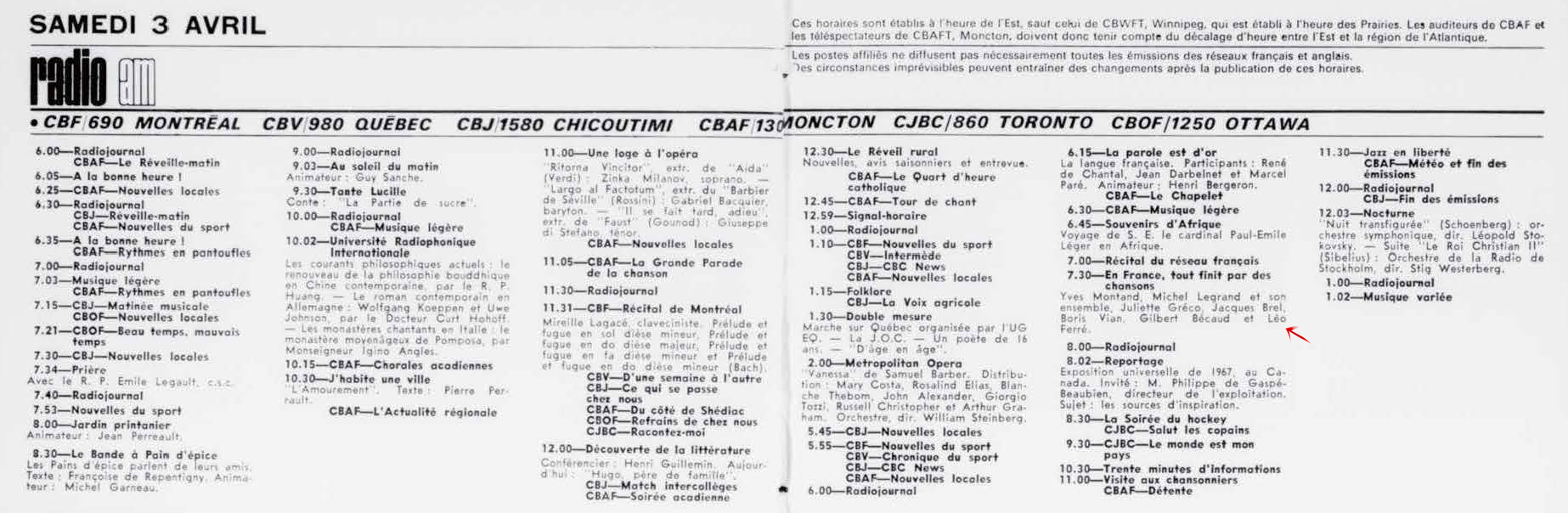 03.04 : La semaine à Radio-Canada, 1950-1966, samedi 3 avril 1965