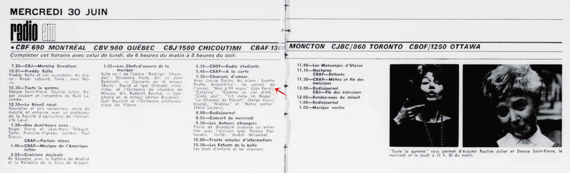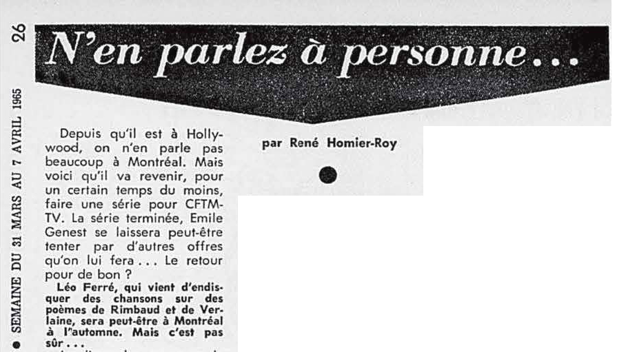 26.06 : La semaine à Radio-Canada, 1950-1966, samedi 26 juin 1965