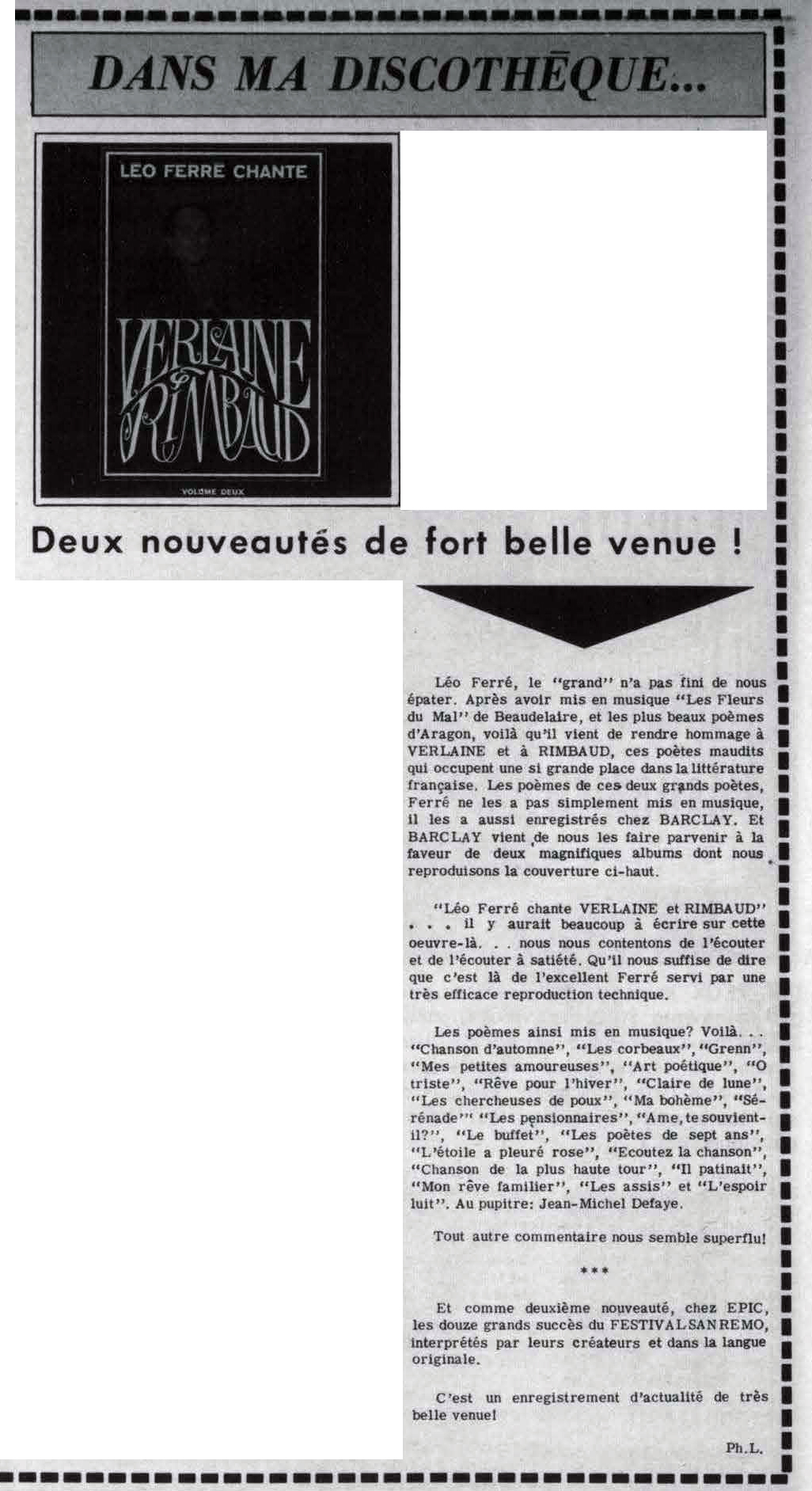• Nouveaux disques - 33 - Léo Ferré
