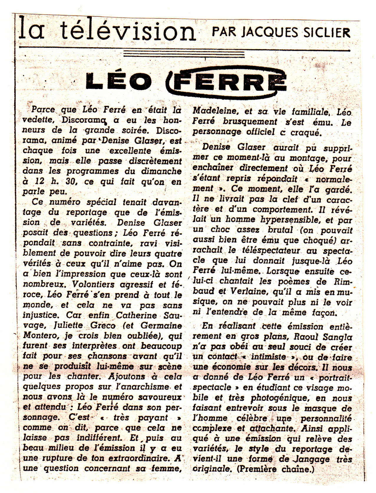 Titre propre : Interview de Léo Ferré par Denise Glaser