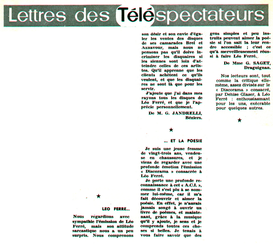 10.03 : Interview de Léo Ferré dans l'émission Discorama de Denise Glaser.