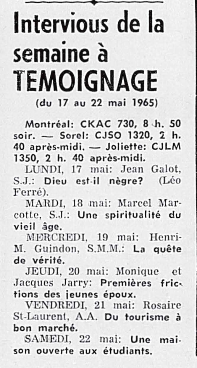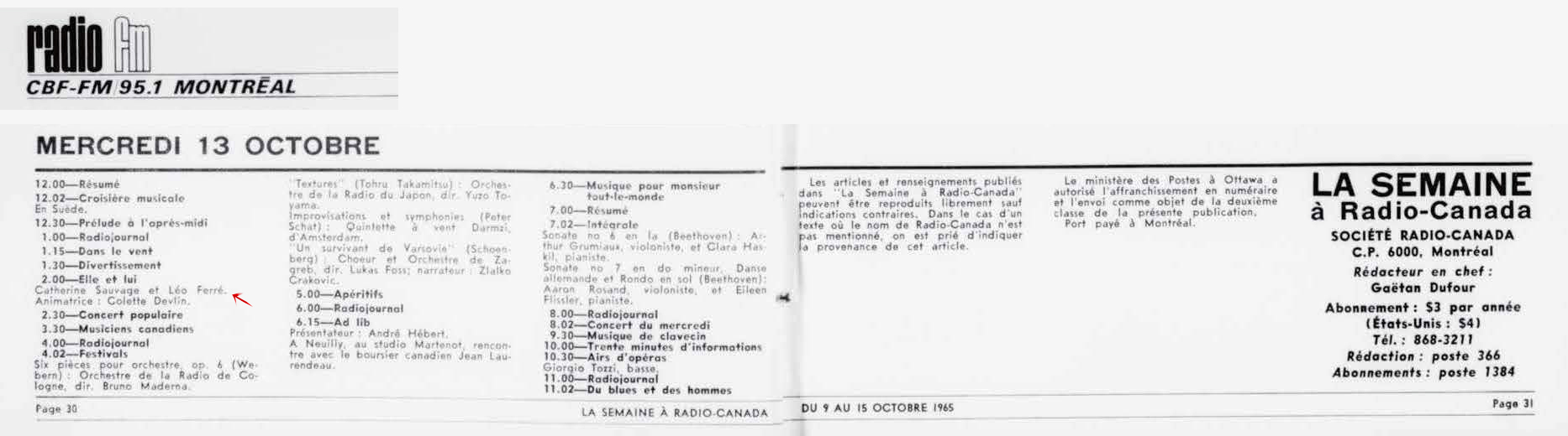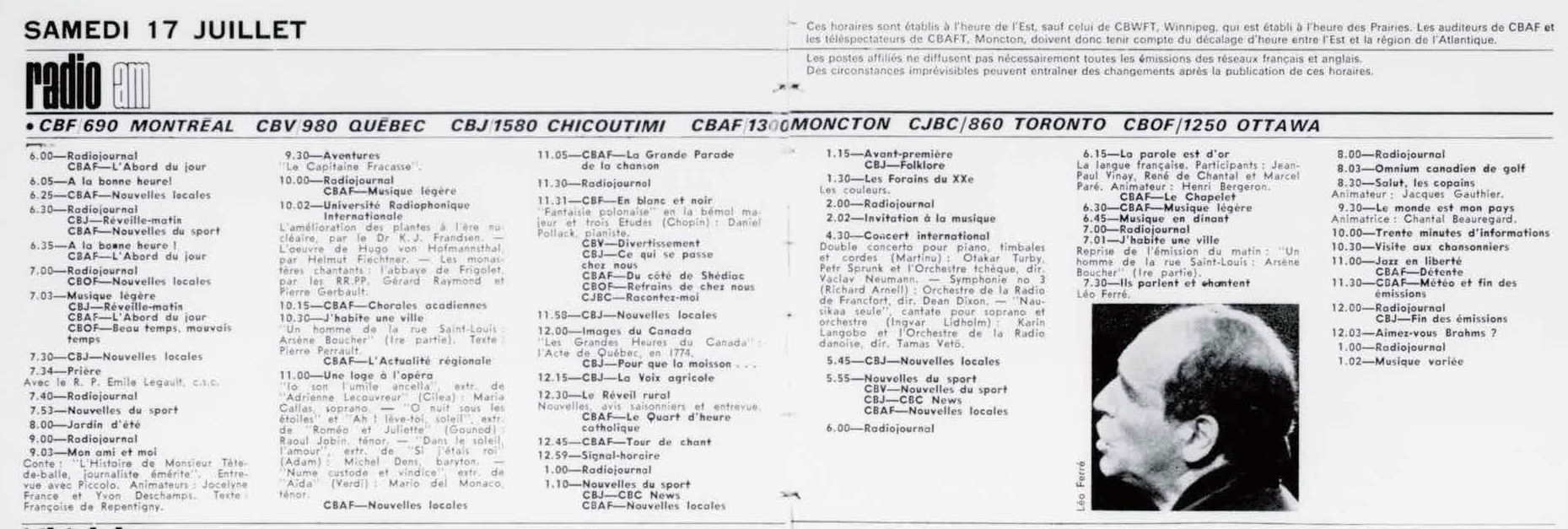 17.07 : La semaine à Radio-Canada, 1950-1966, samedi 17 juillet 1965