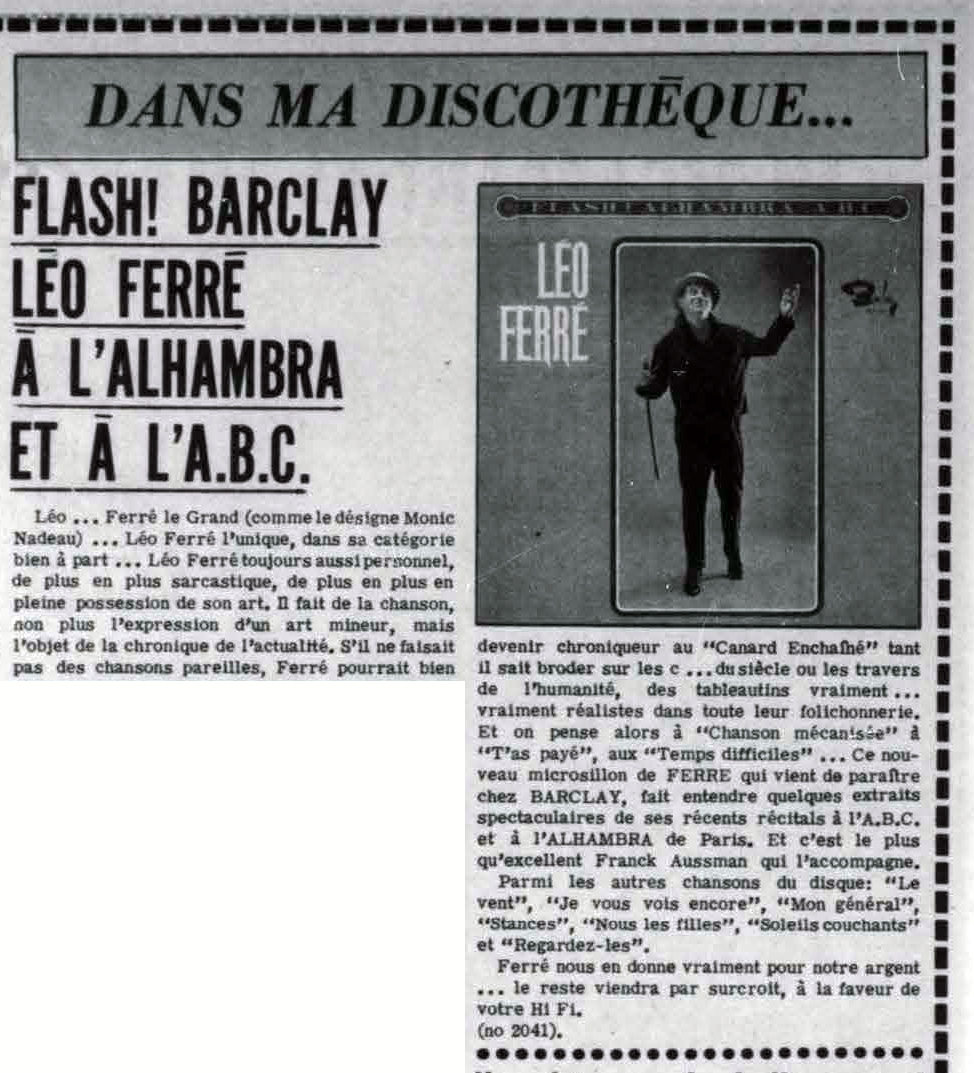 • Flash ! Barclay - Léo Ferré à l'Alhambra et à l'A.B.C.