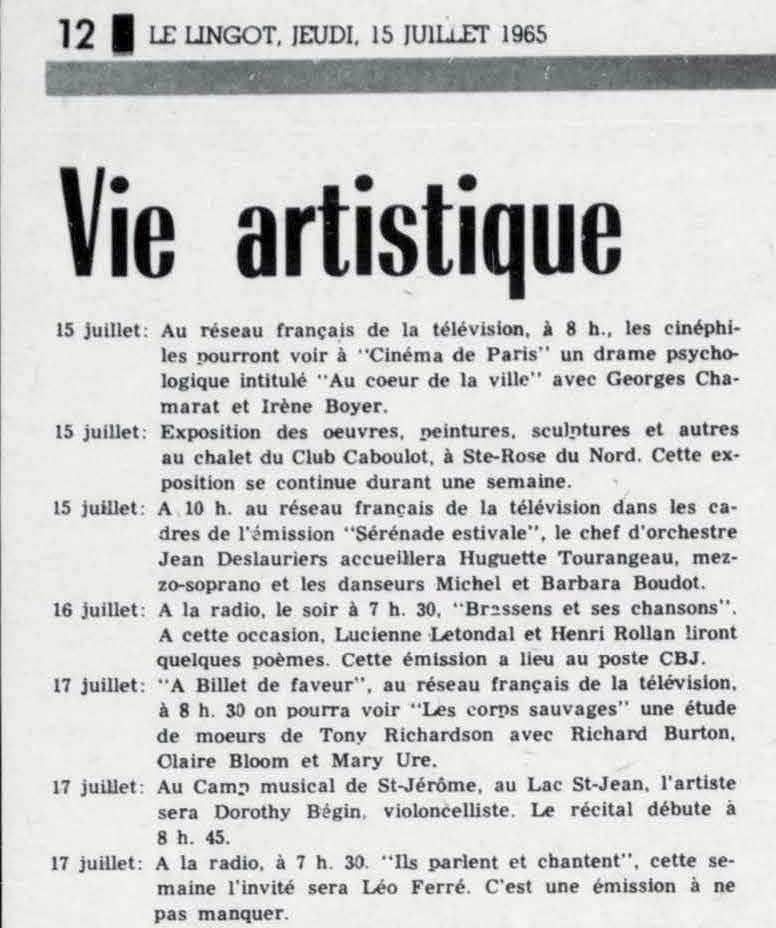 15.07 : Le lingot, 1947- (Saguenay), jeudi 15 juillet 1965