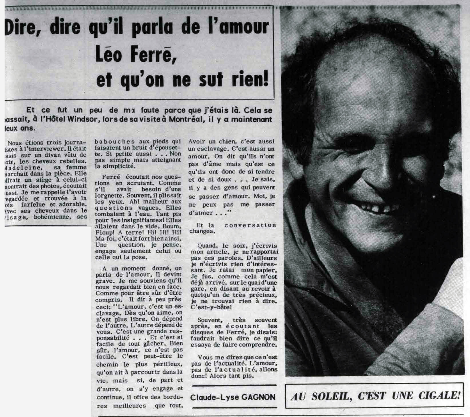• Dire, dire qu'il parla de l'amour Léo Ferré, et qu'on ne sut rien !