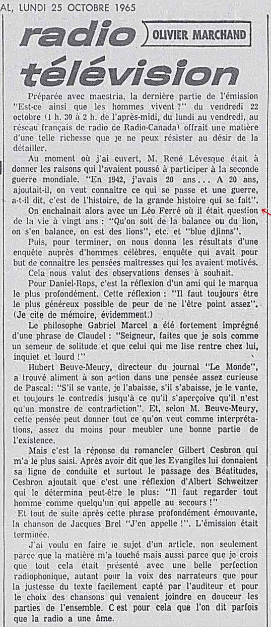par Olivier Marchand (émission "Est-ce ainsi que les hommes vivent ?")