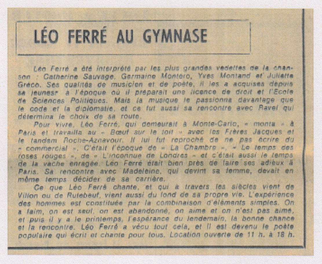 • Léo Ferré au Gymnase