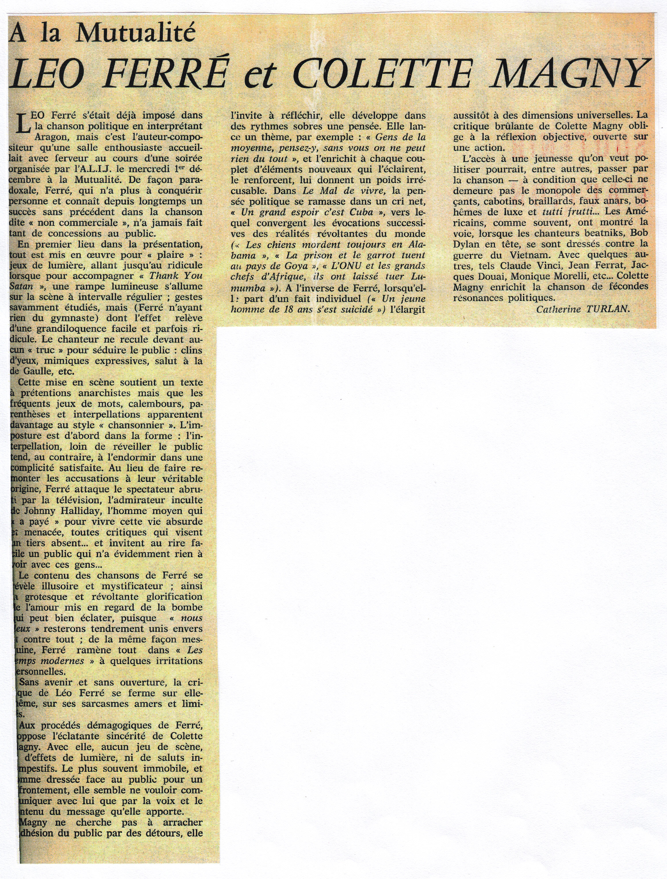 • À La Mutualité - Léo Ferré et Colette Magny