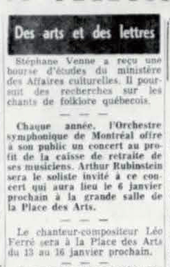 Il remplace au pied levé Charles Trénet à Bobino, il donne un récital, seul au piano et rend un vibrant hommage au Poète Rimbaud qui laisse la salle émue. Le concert est capté par la Radio nationale.