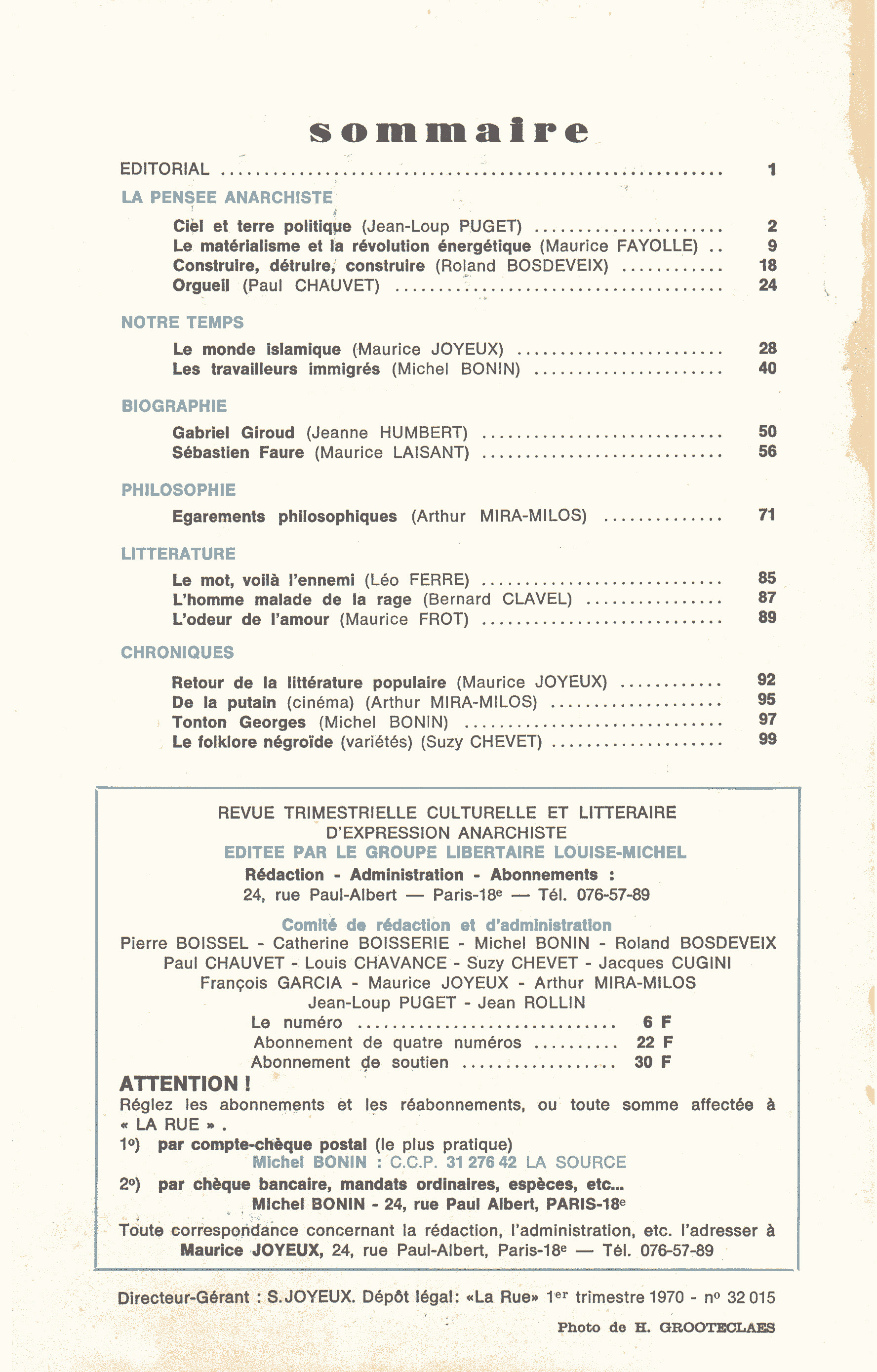 La Rue N°7 - 1er trimestre 70