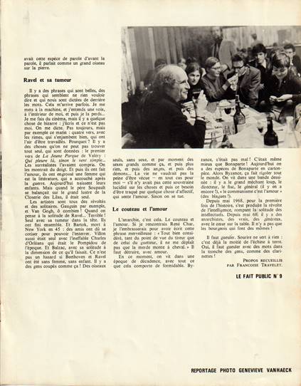 Le jeudi 31, il donne une interview à Émile Noël, pour l’émission Profils sur France-Culture.