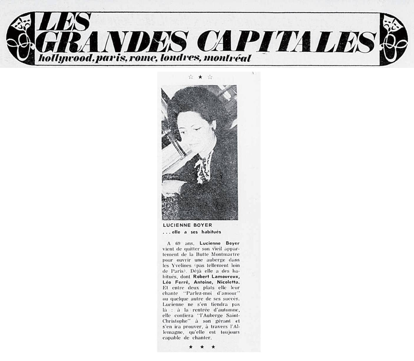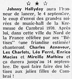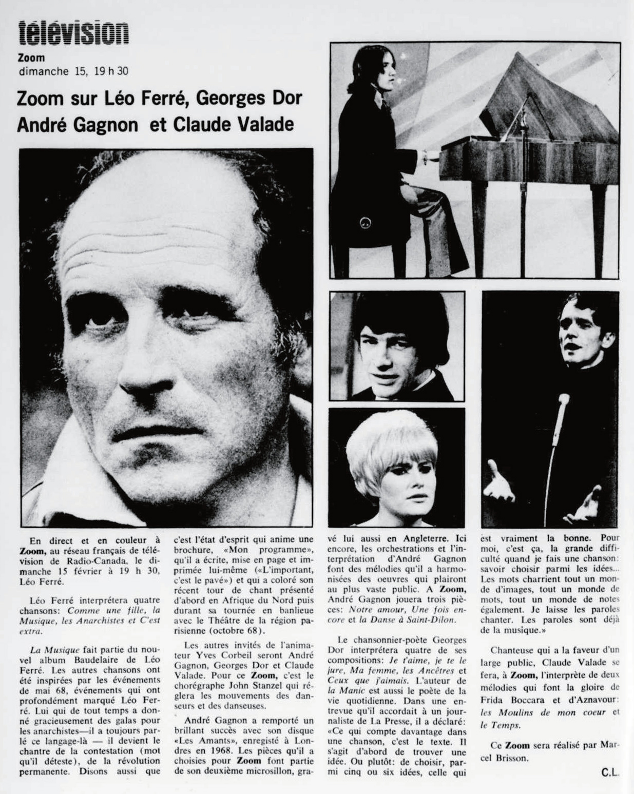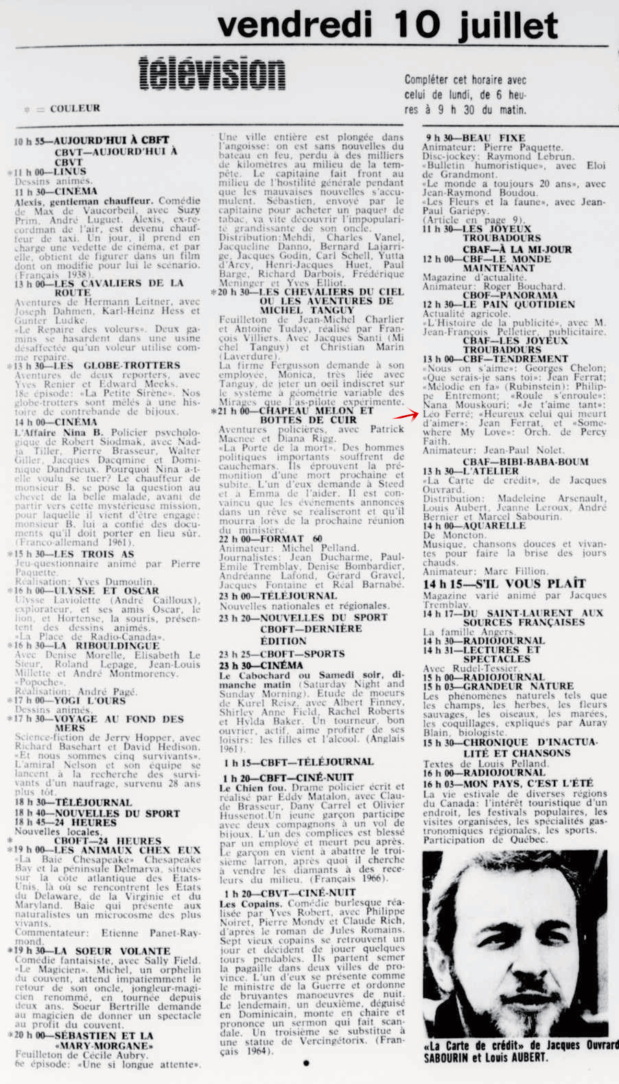 Le samedi 21, il passe à la télévision dans l’émission Samedi et compagnie où des extraits du récital à Bobino sont donnés.