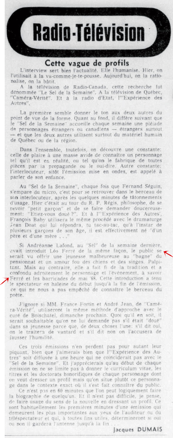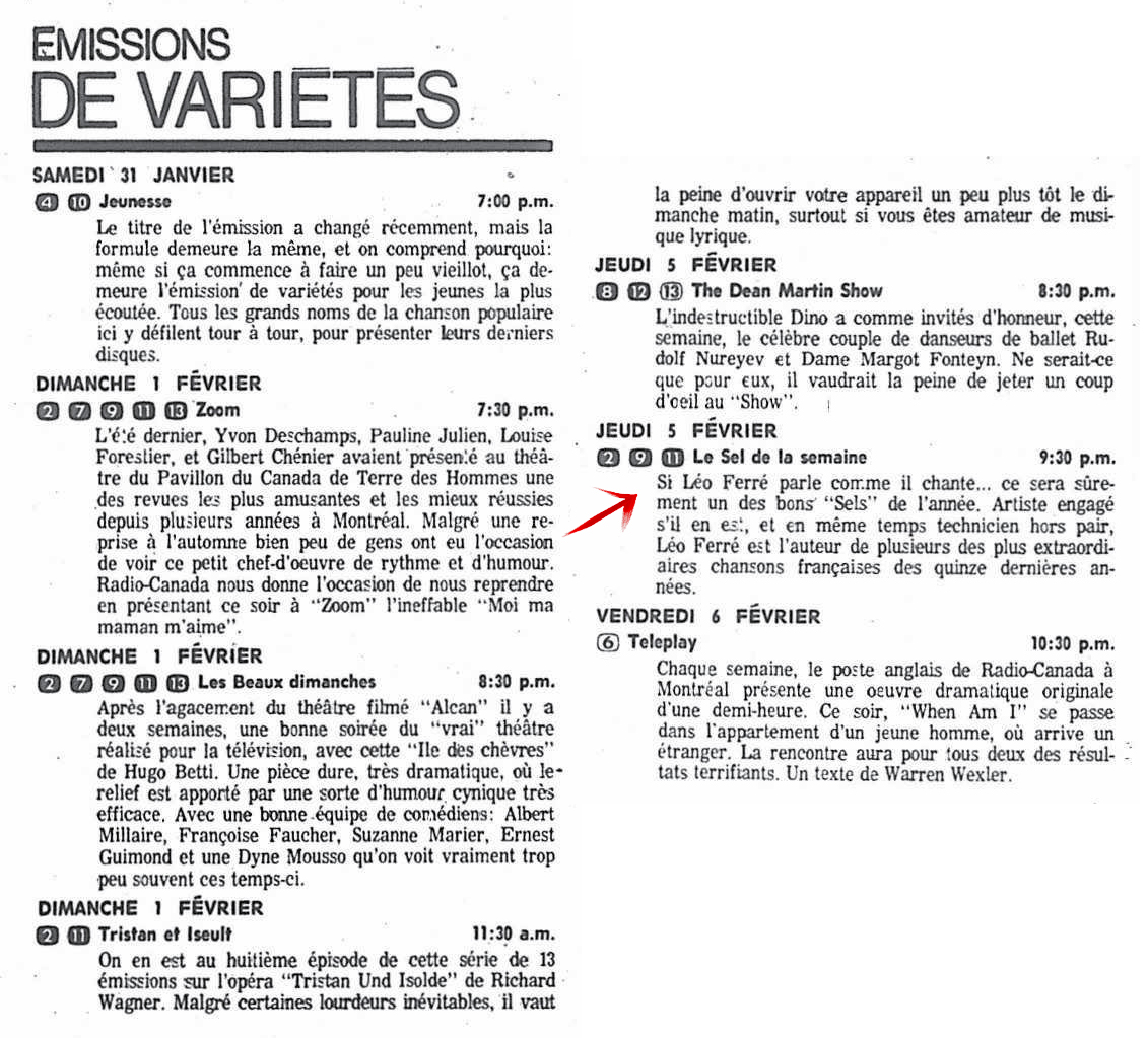 31.01 : Ici Radio-Canada, 1966-1985, 31 janvier 1970