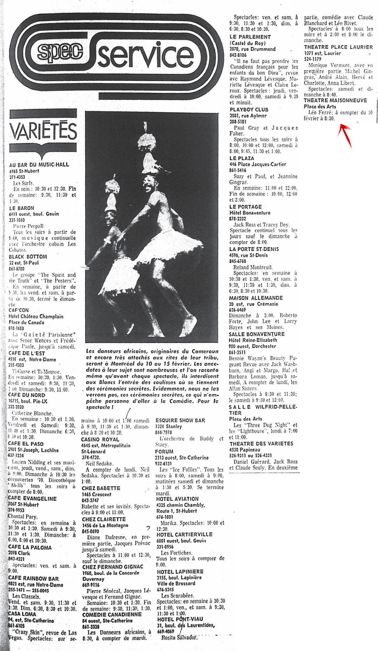 • Spec service - Variétés (Théâtre Maisonneuve Place des Arts, à partir du 10)