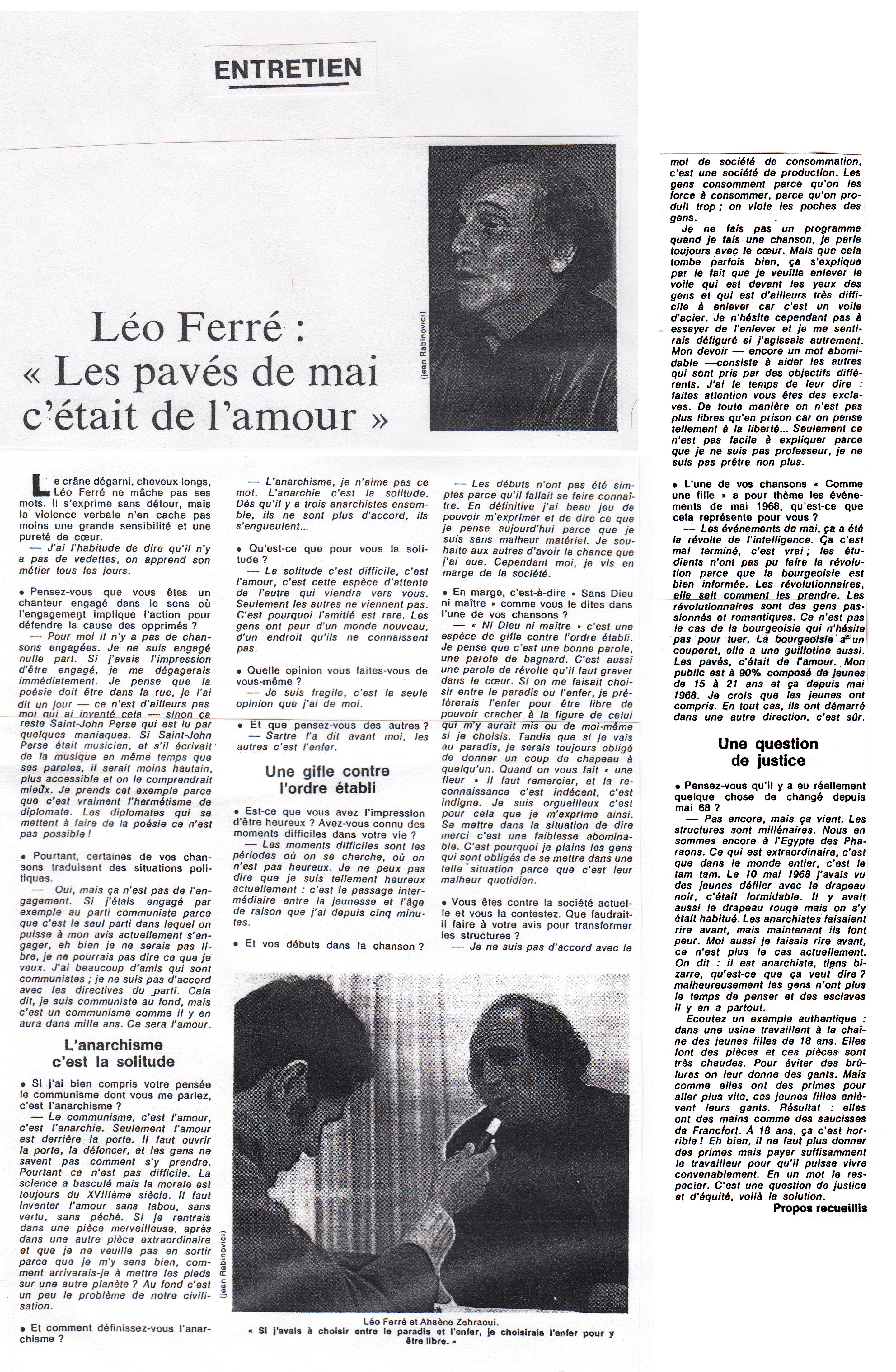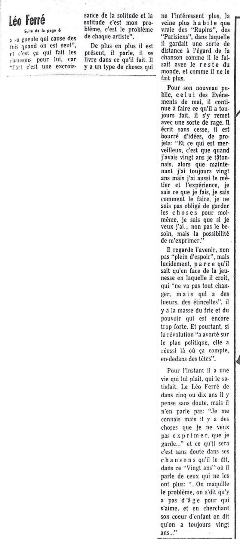 • Léo Ferré : "Depuis mai 68, j'ai 20 ans"