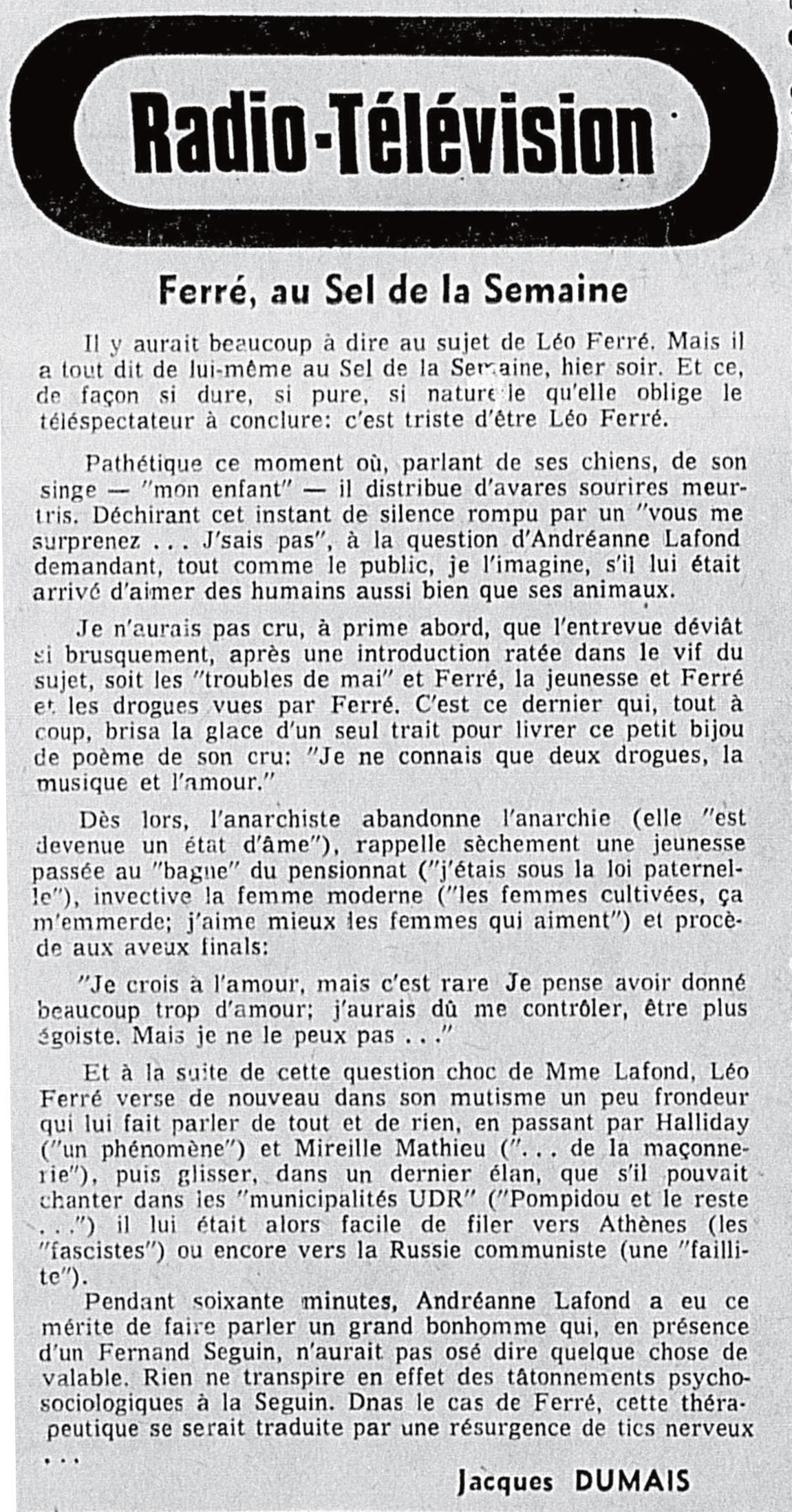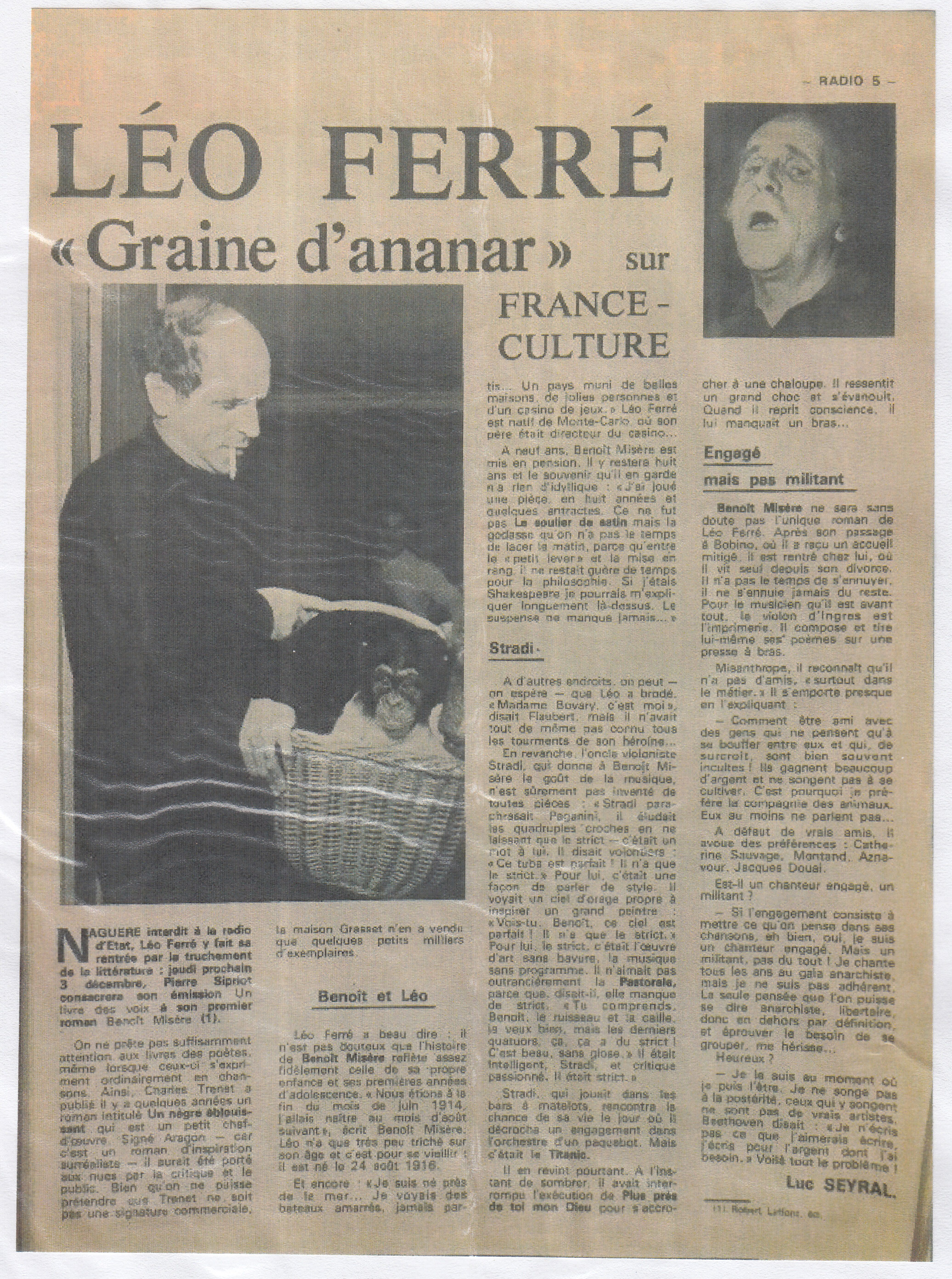 • Léo Ferré - "Graine d'ananar" sur France-Culture
