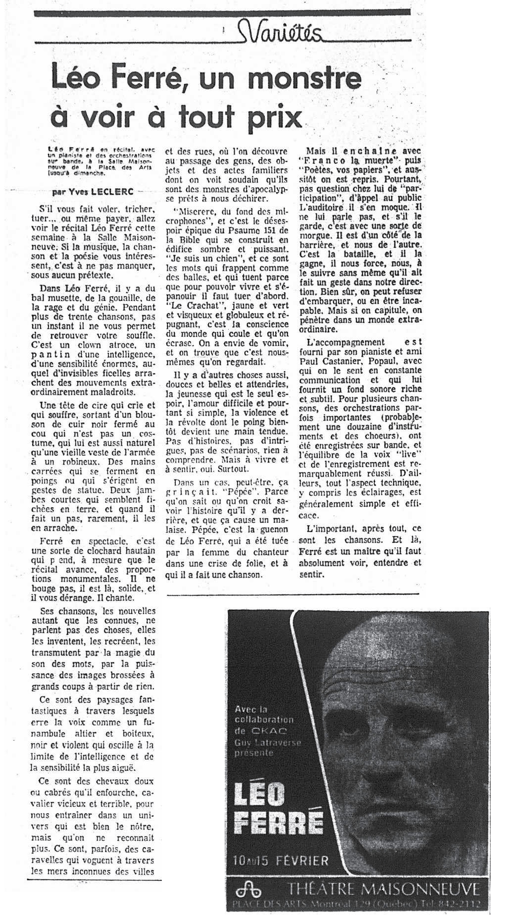 • Léo Ferré à Montréal