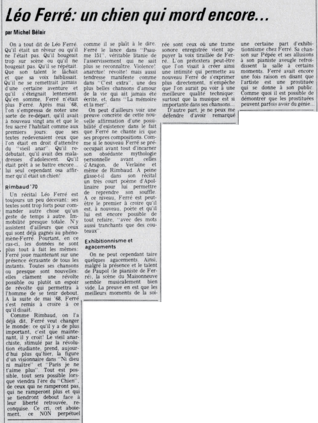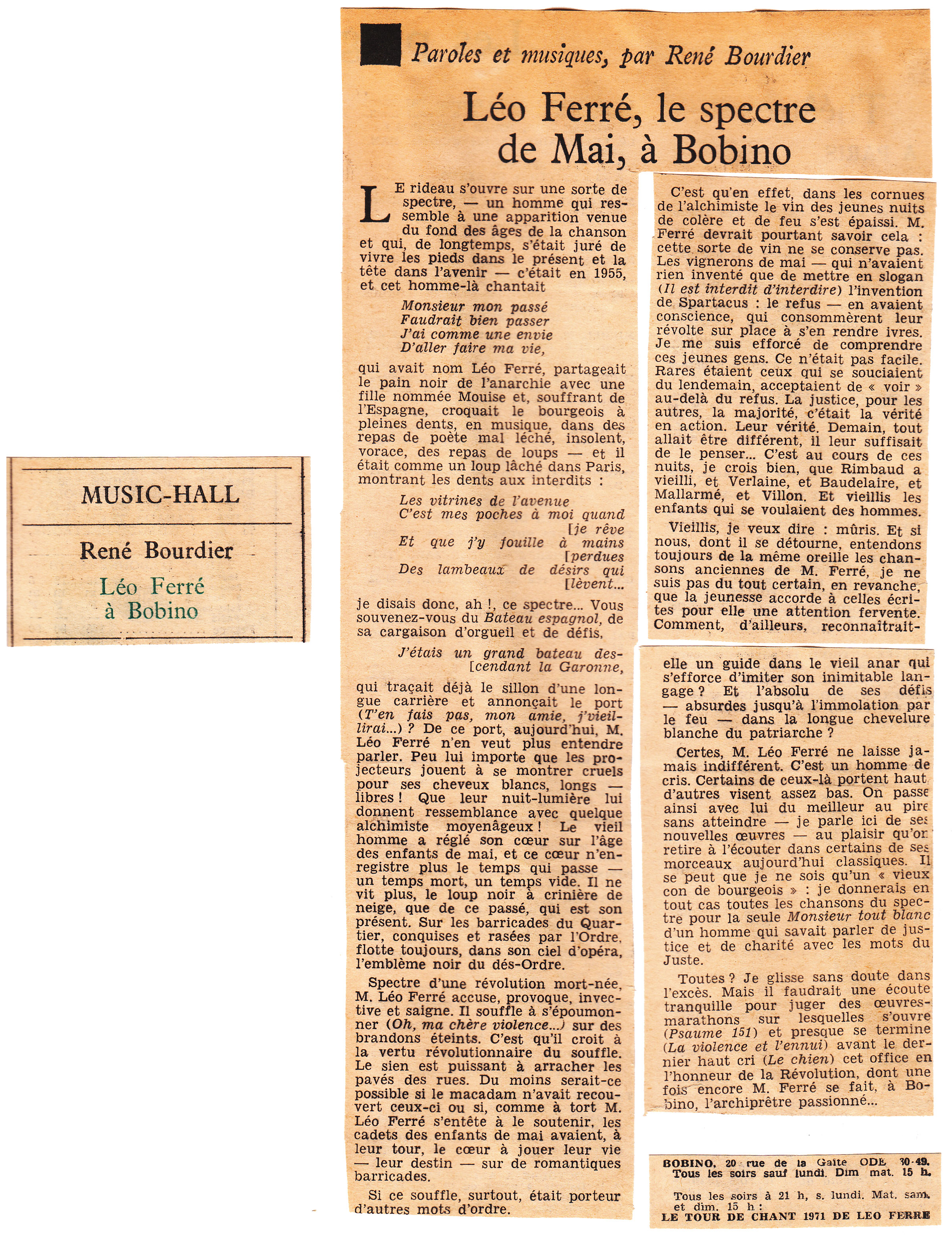 • Léo Ferré, le spectre de Mai, à Bobino