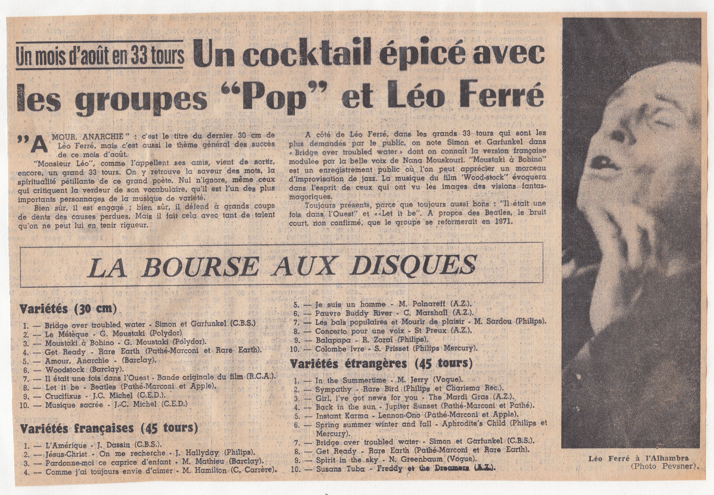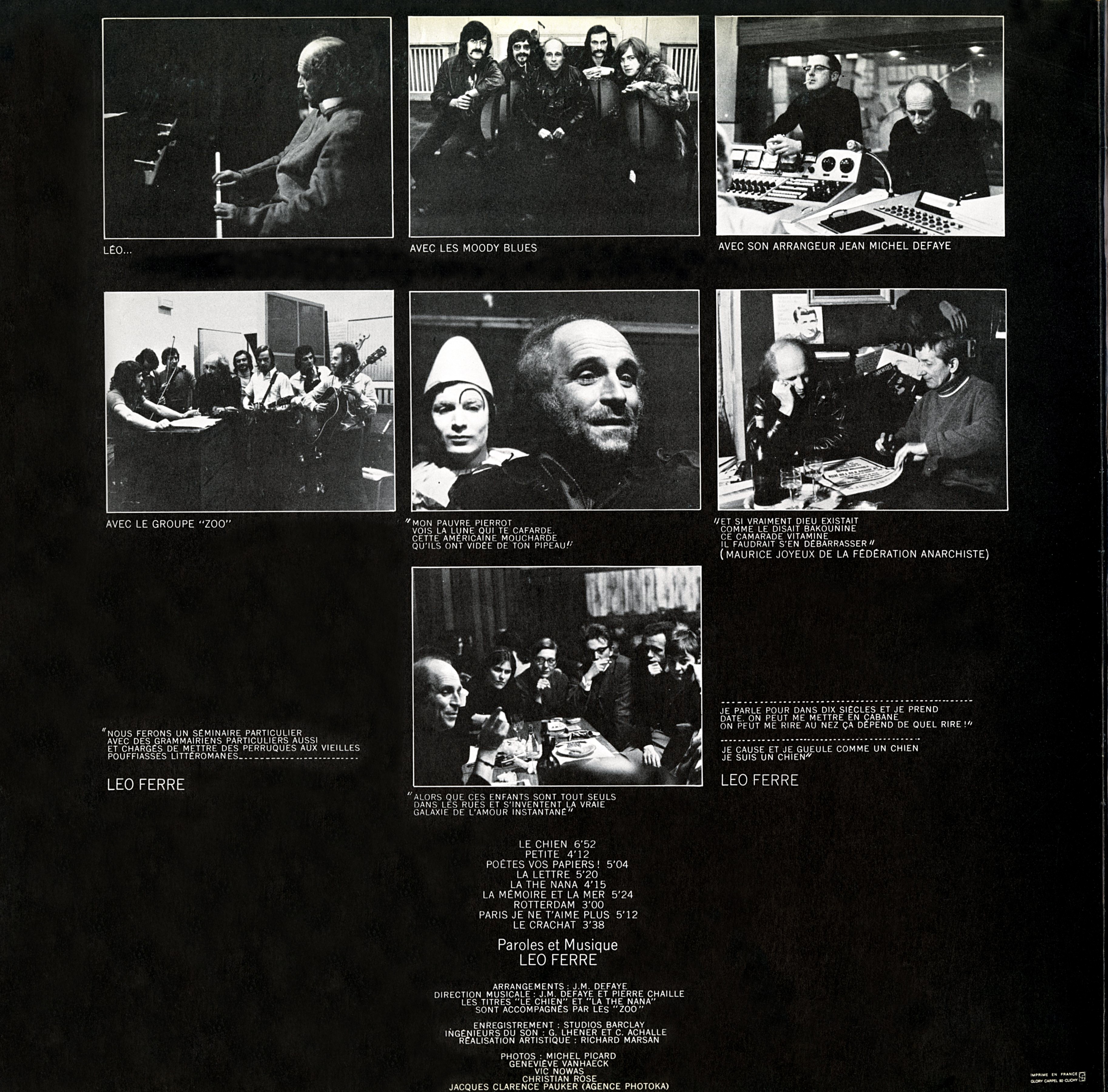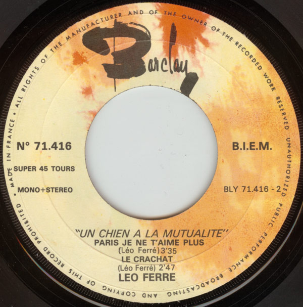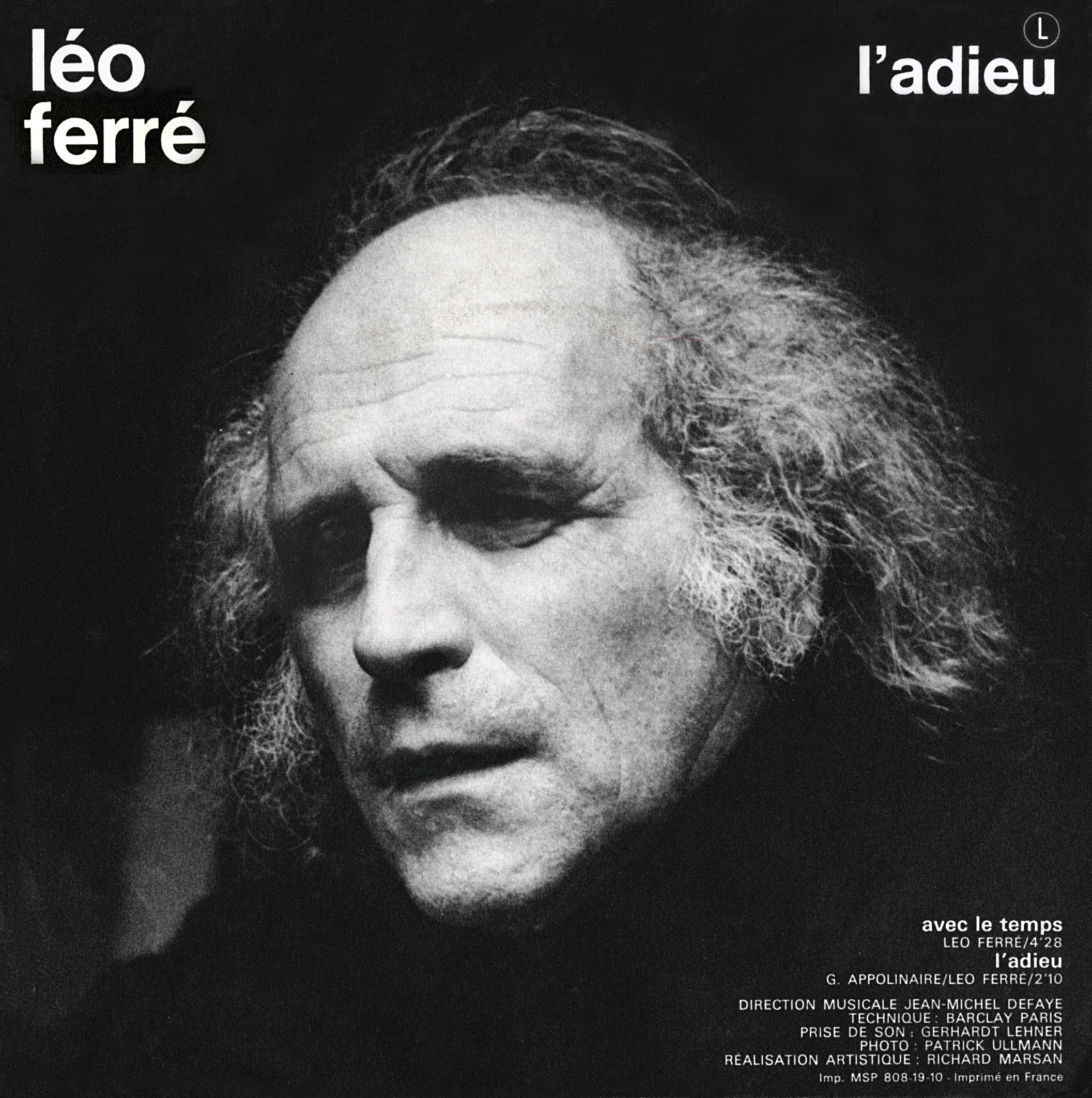 Les jeudi 29 janvier et mercredi 21 octobre, Ferré enregistre respectivement L’Adieu (poème d’Apollinaire) et Avec le temps, qui deviendront un 45-tours Barclay (L’Adieu ne figure pas sur un 33-tours original ; il sera repris des années plus tard dans un 33-tours de compilation).