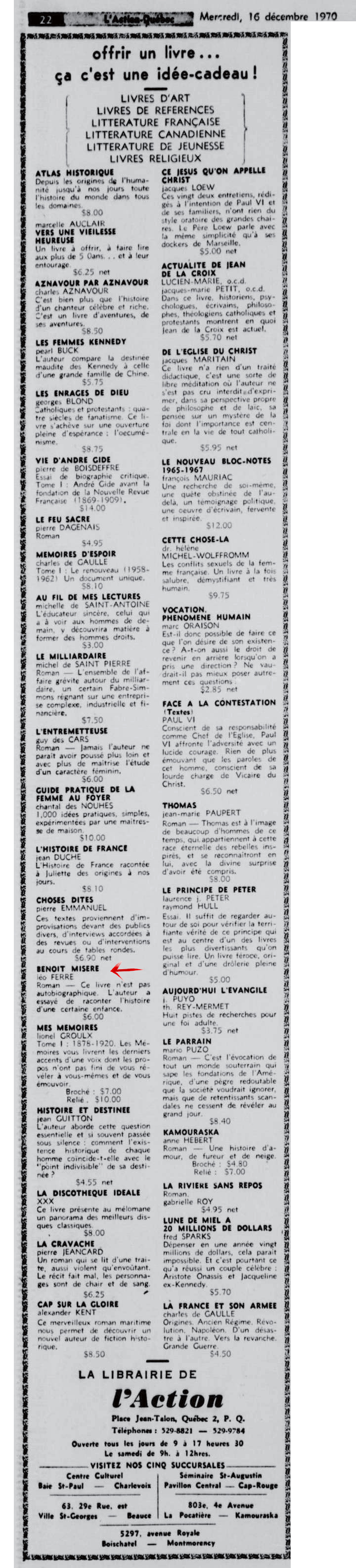 16.12 : L'Action, 1962-1971, mercredi 16 décembre 1970