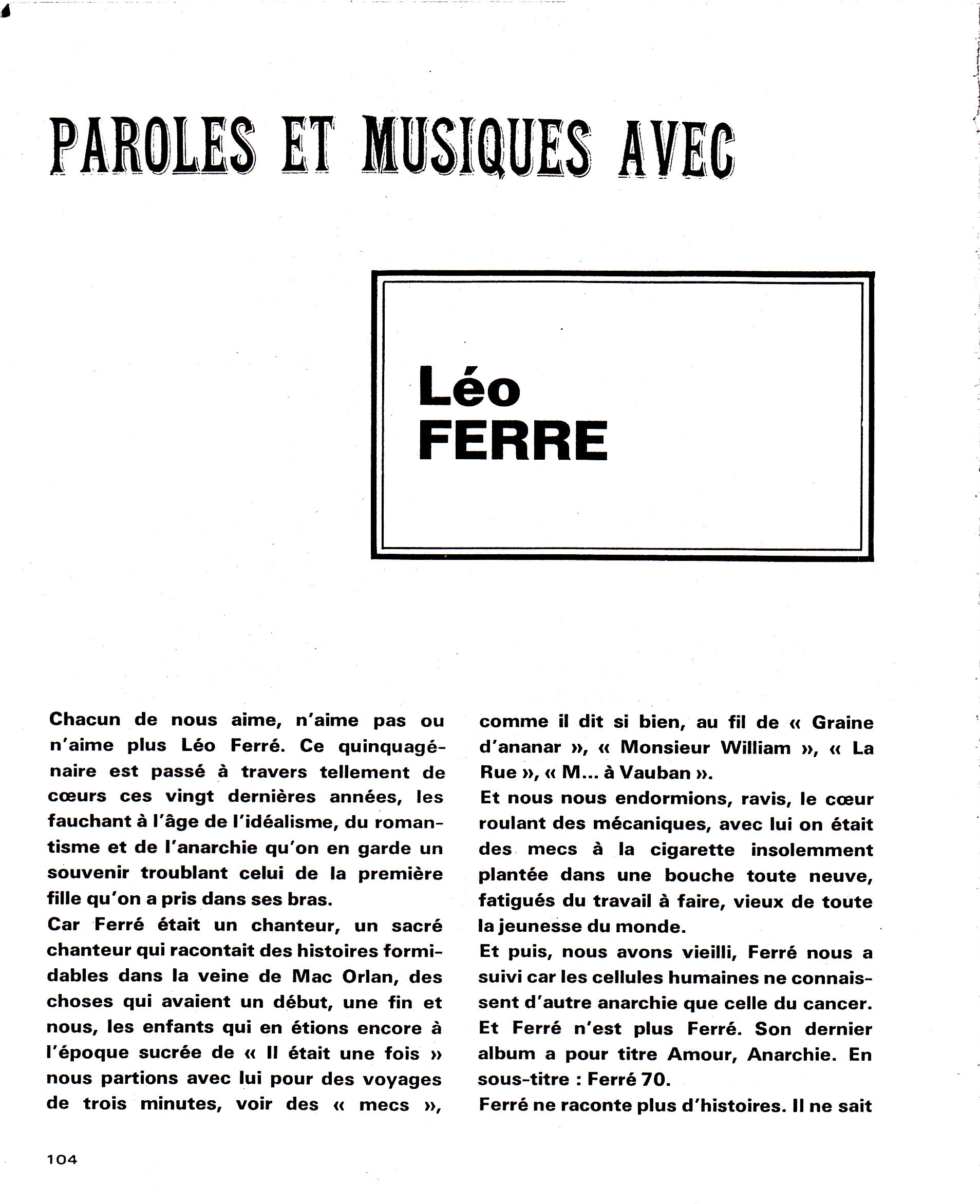 • Paroles et musiques avec Léo Ferré