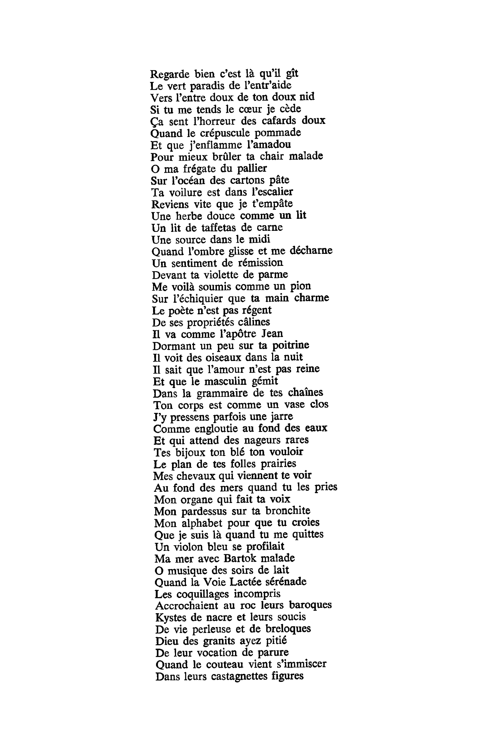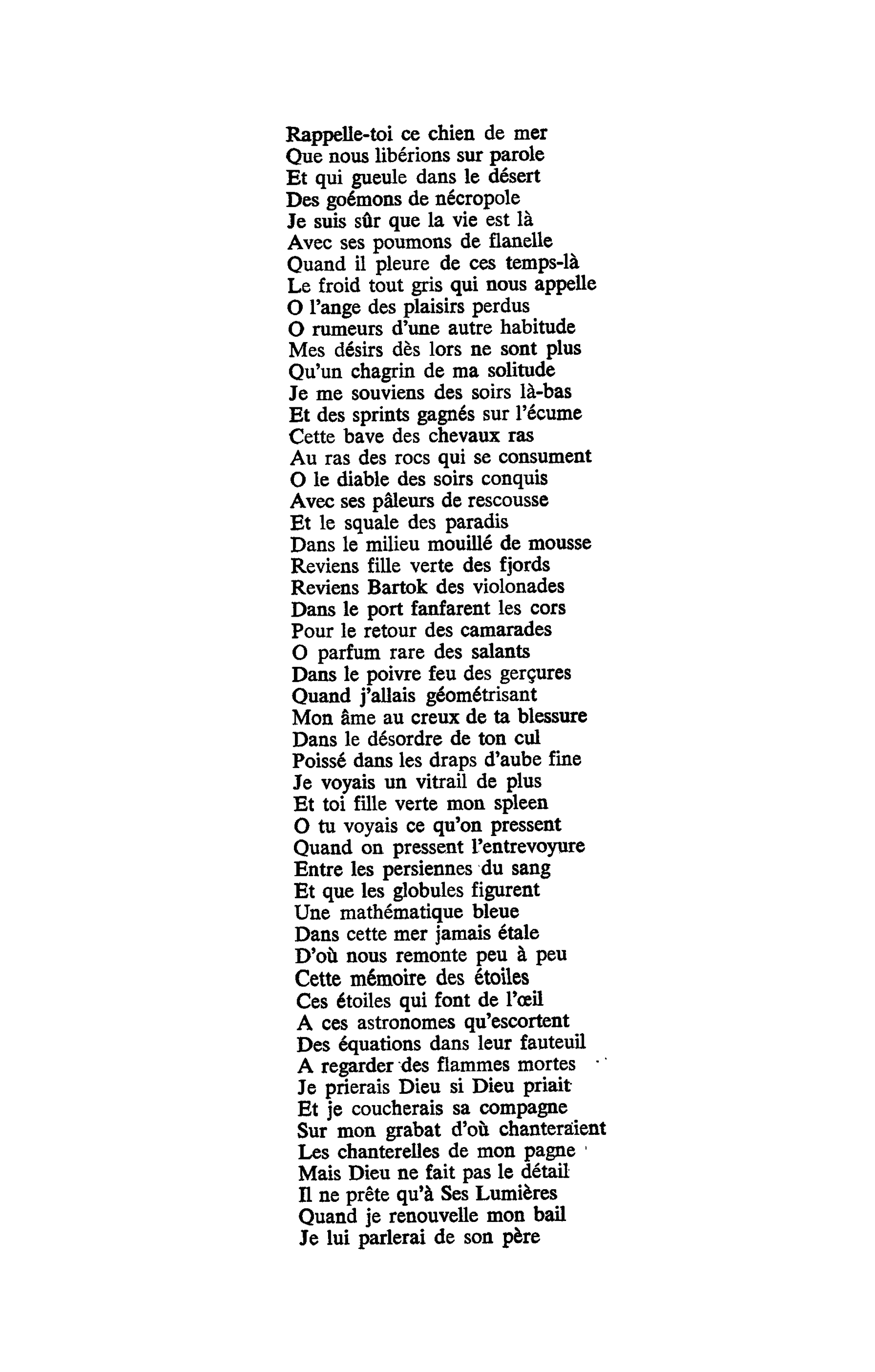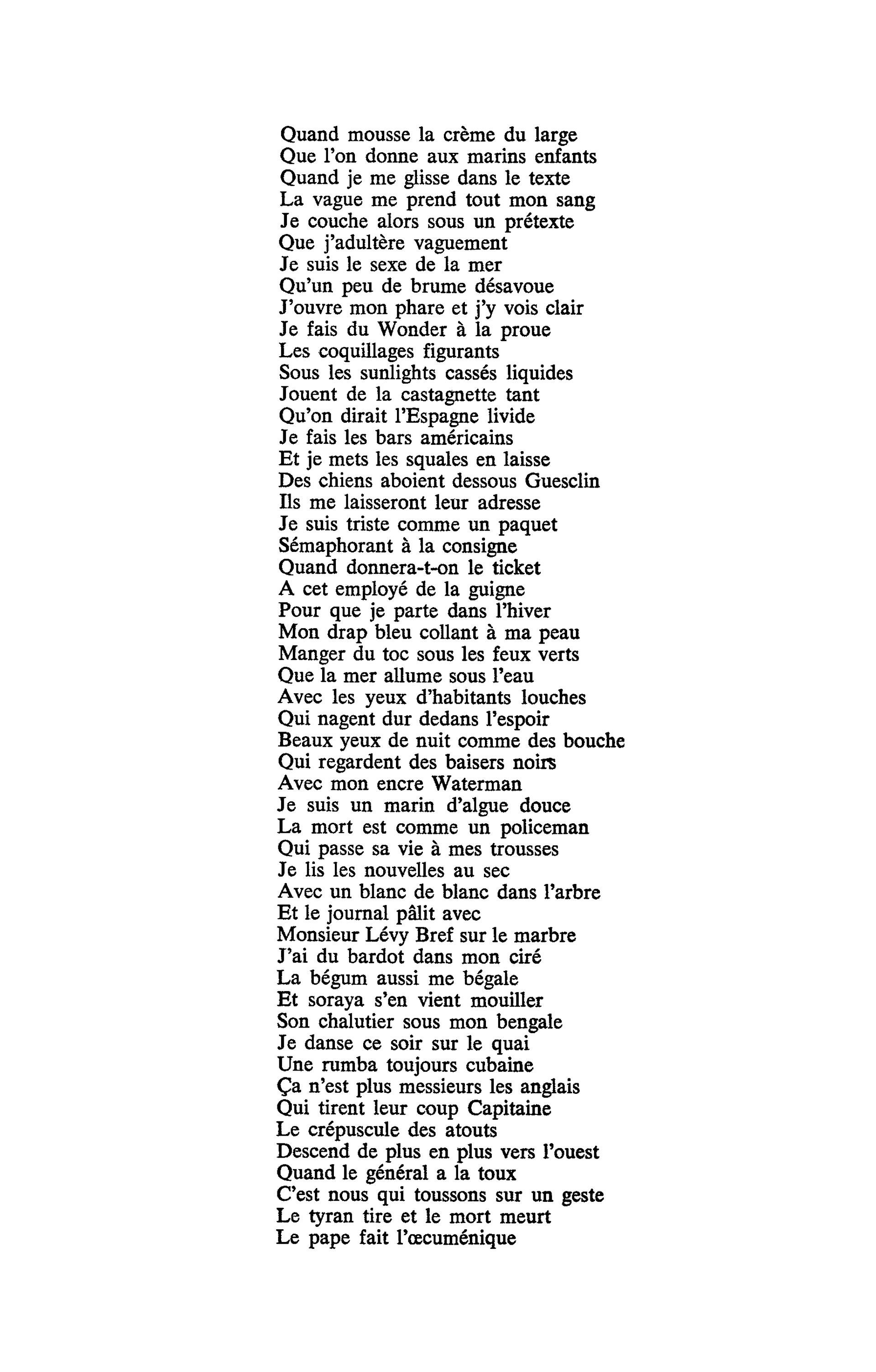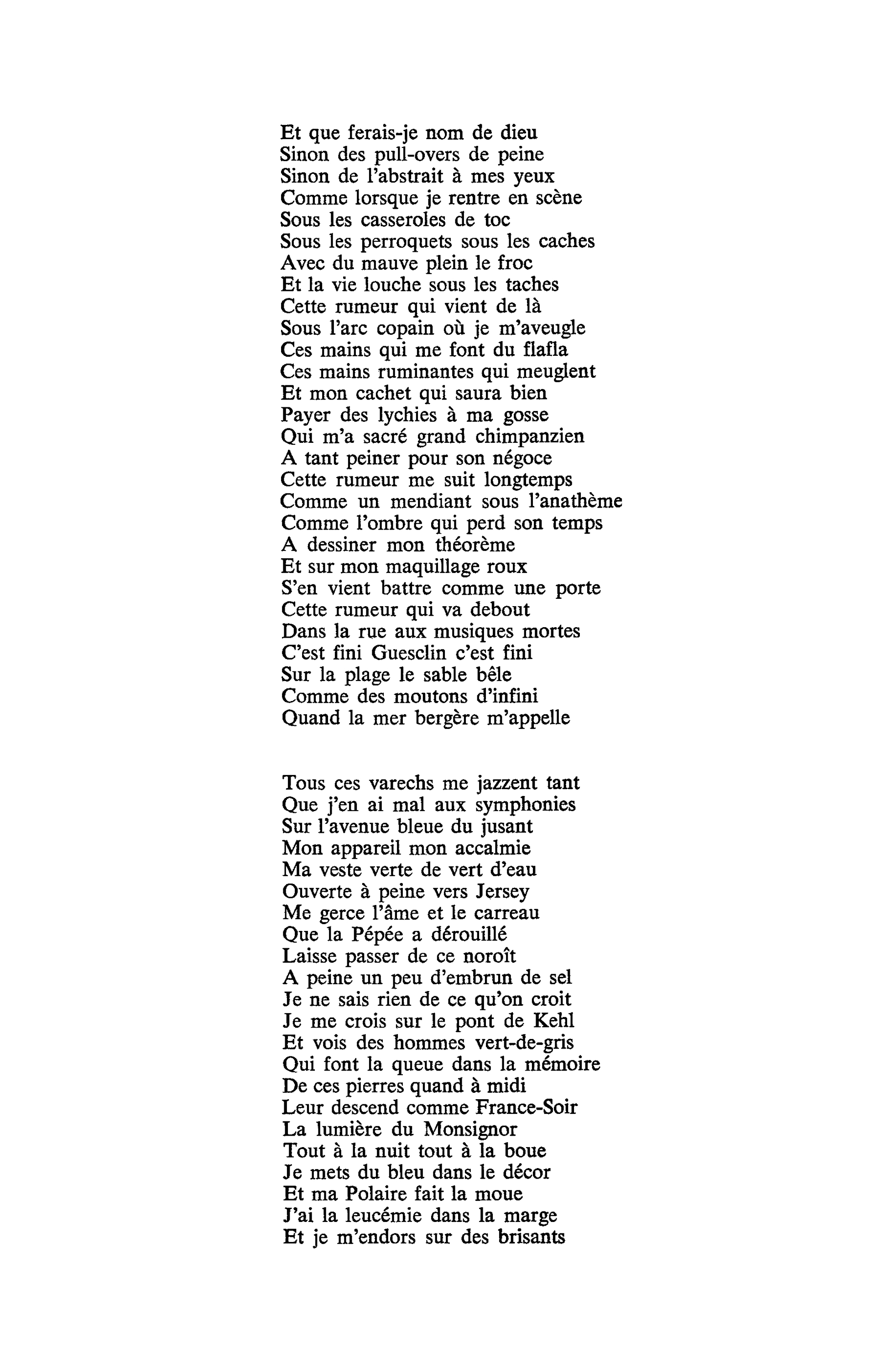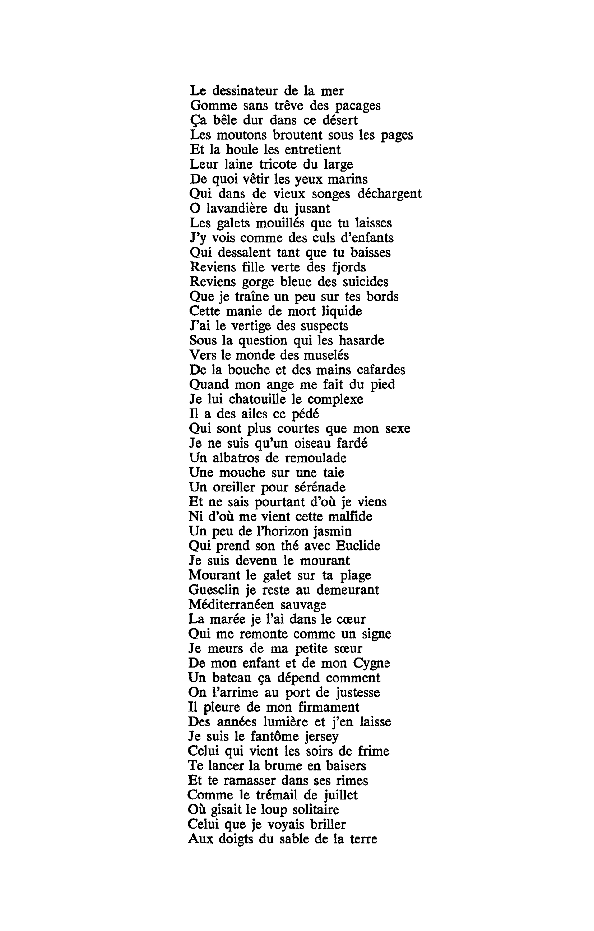 Une chanson que Robert Belleret, journaliste écrivain spécialiste de Ferré, qualifie d'immense divagation lyrique et autobiographique. Une poésie non pas hermétique mais cryptée. Dont Ferré affirmait être "la clé"... et dont seuls ses proches avaient le double. Il fallait avoir accompagné Léo en haut du rocher de Guesclin ou partagé quelques instants de sa vie sur l'estran pour comprendre "le fantôme de Jersey", "le trémail de juillet", "le loup solitaire", et "les doigts du sable de la terre".