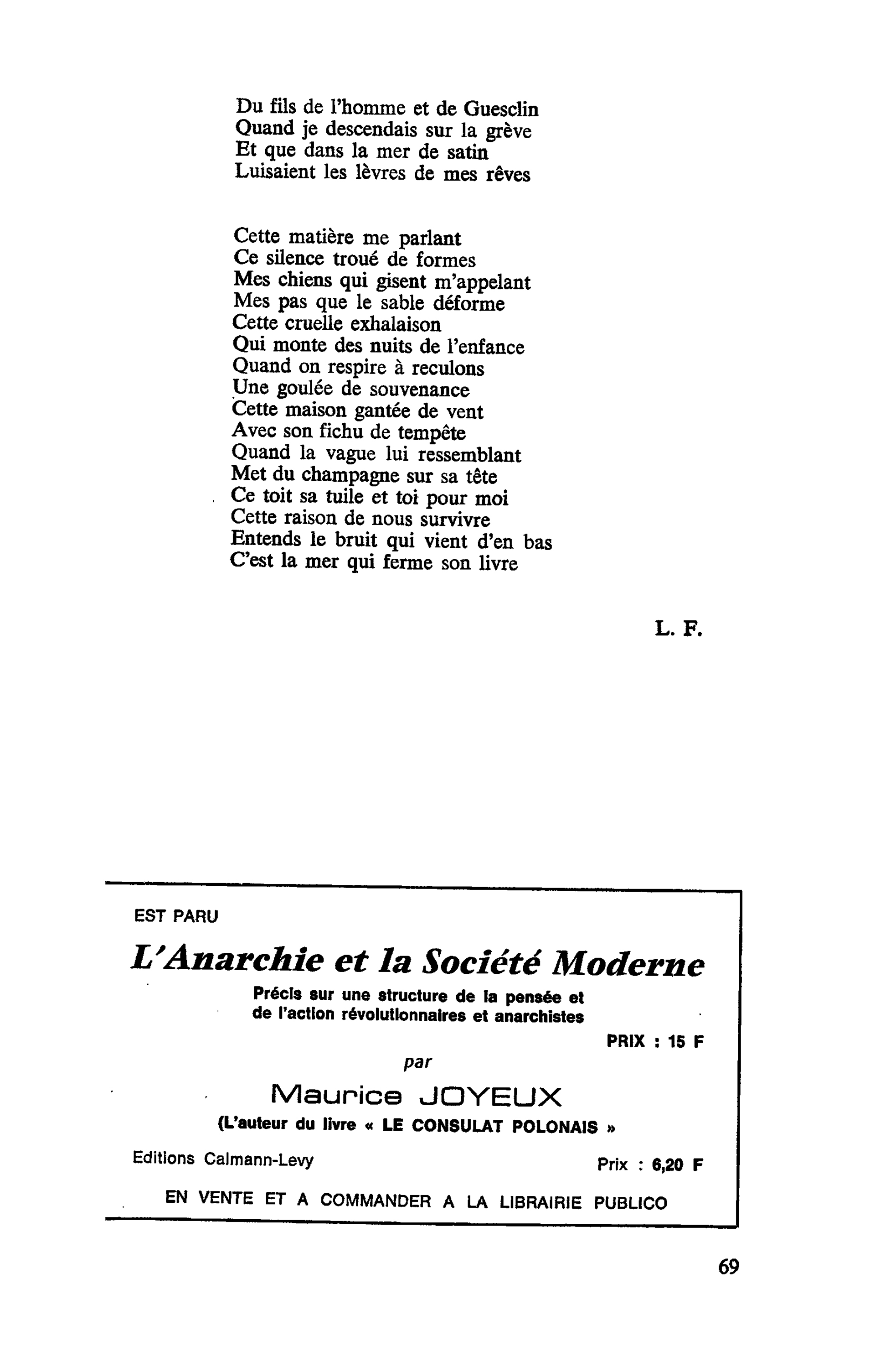 Il évoque le problème de la création "avec un petit c". Jean-Pierre Chabrol pense que le livre n'a qu'un seul défaut c'est qu'il a été écrit par Léo Ferré qui, signale-t-il est un ami. Léo Ferré a ensuite beaucoup plus de verve et de lyrisme pour parler du livre de Jean-Pierre Chabrol sur la Commune Canon Fraternité.