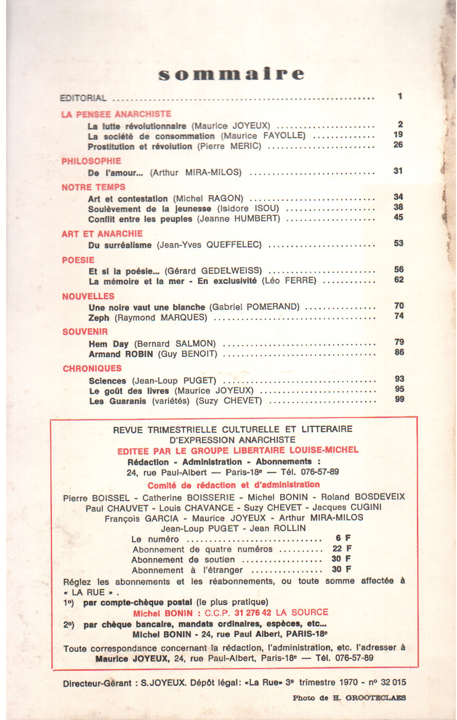 La rue n°9, 4eme trimestre 1970