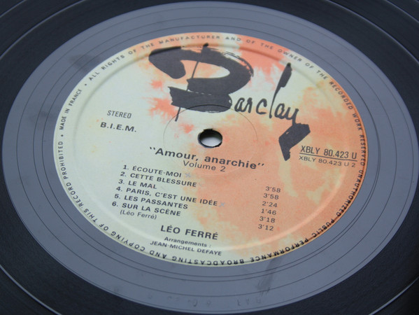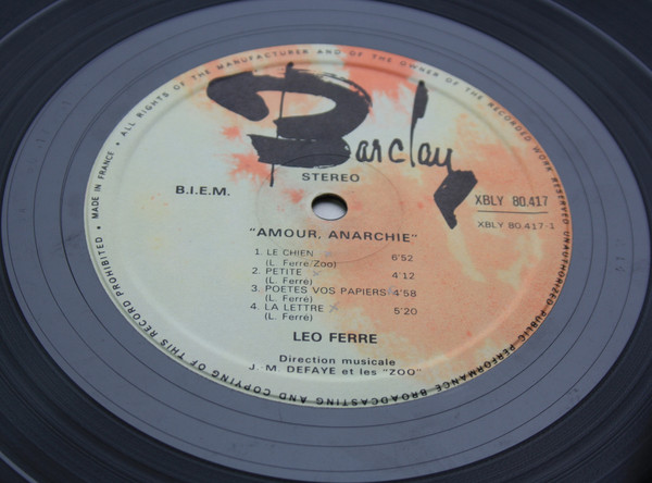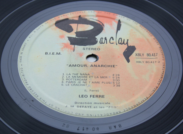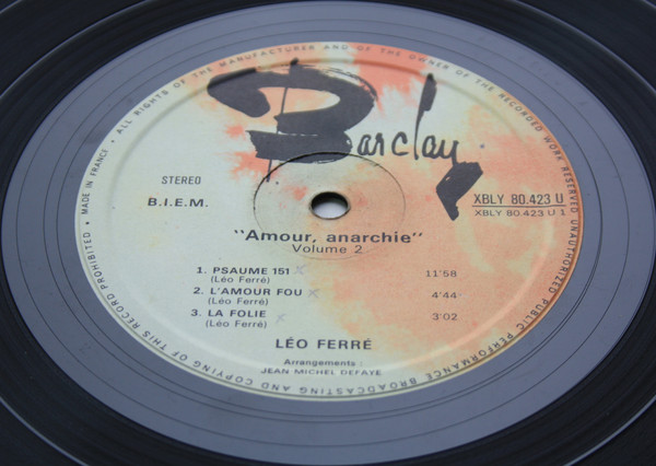 Les lundi 26 janvier, lundi 2, mercredi 4, vendredi 13 et vendredi 20 mars, mardi 14 et samedi 25 avril, mercredi 21 octobre, il enregistre deux 30-cm Barclay intitulés Amour Anarchie - Ferré 70, qui comprennent :
