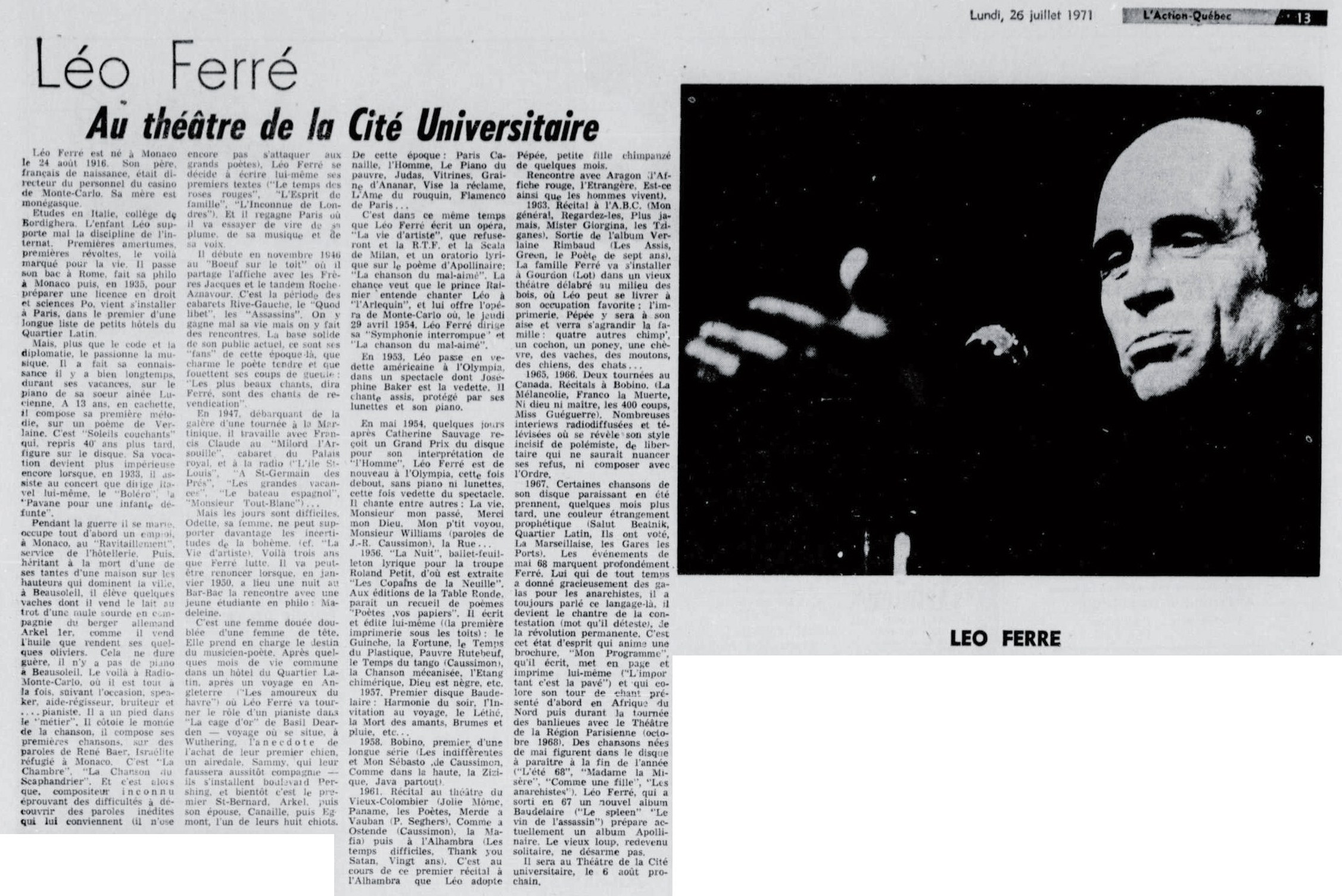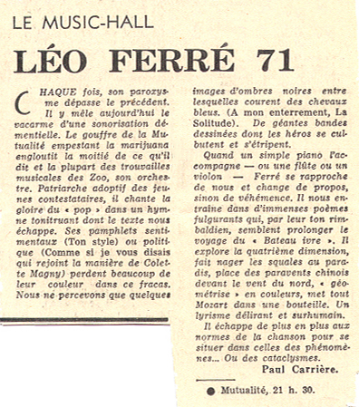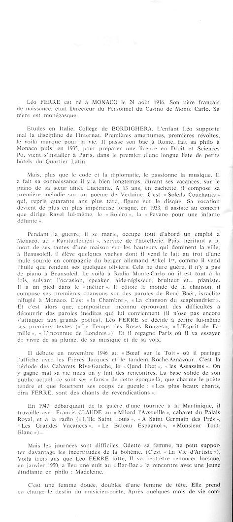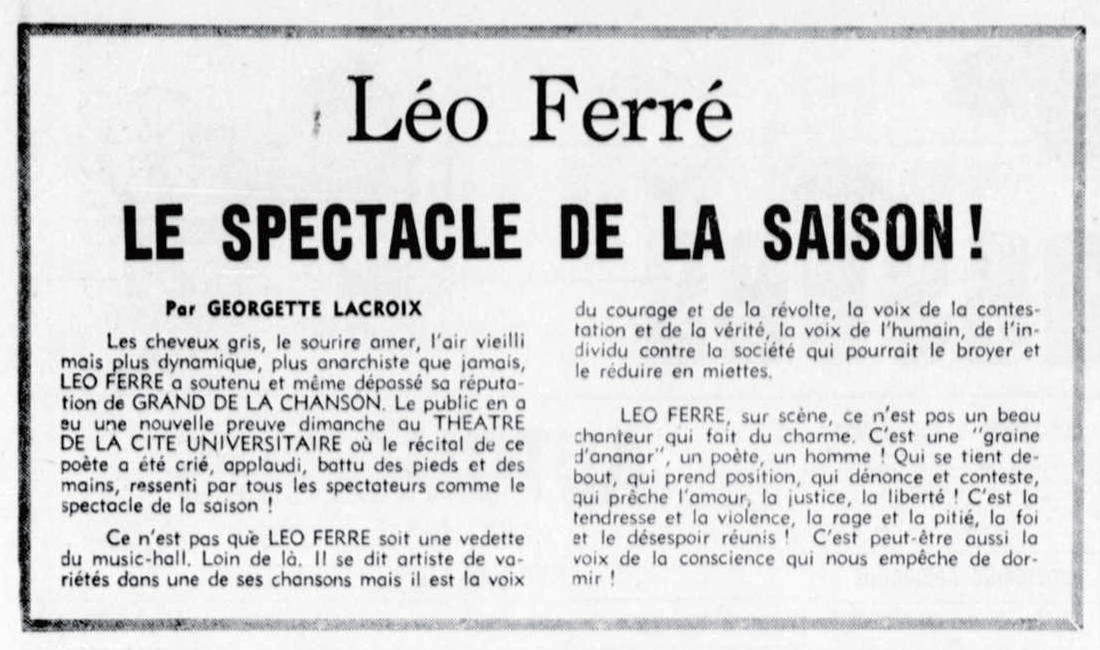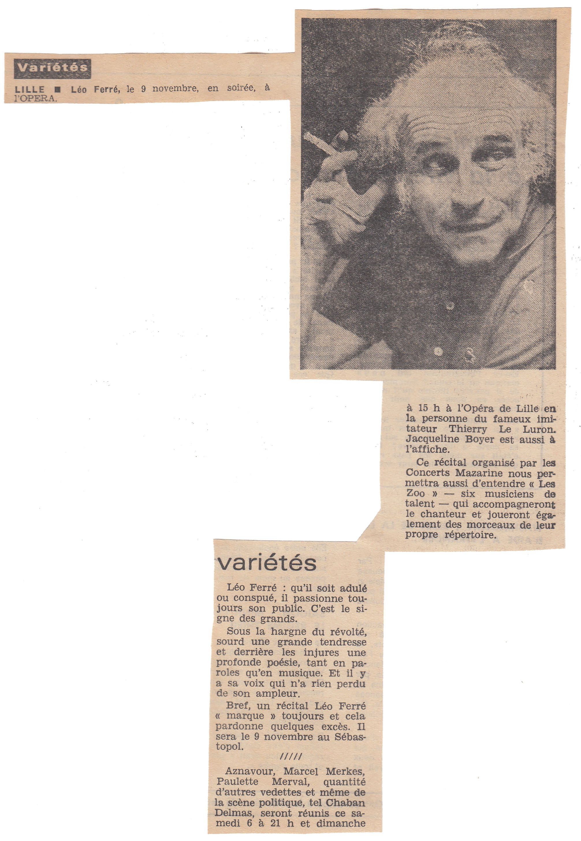 • Lille - Léo Ferré, le 9 novembre, en soirée à l'Opéra