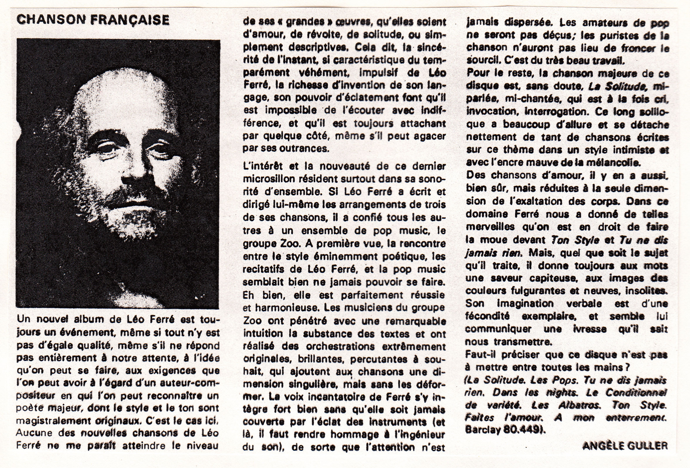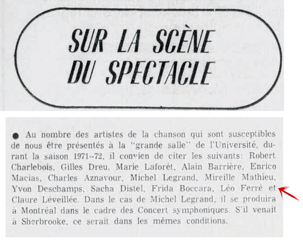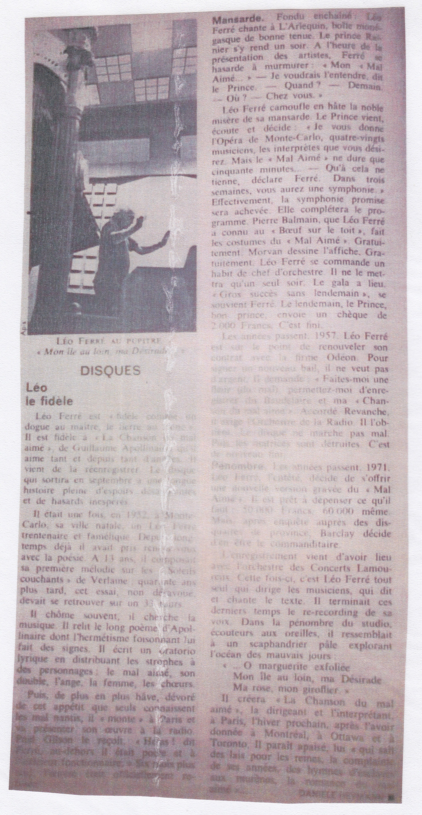 • Lille - Léo Ferré, le 9 novembre, en soirée à l'Opéra