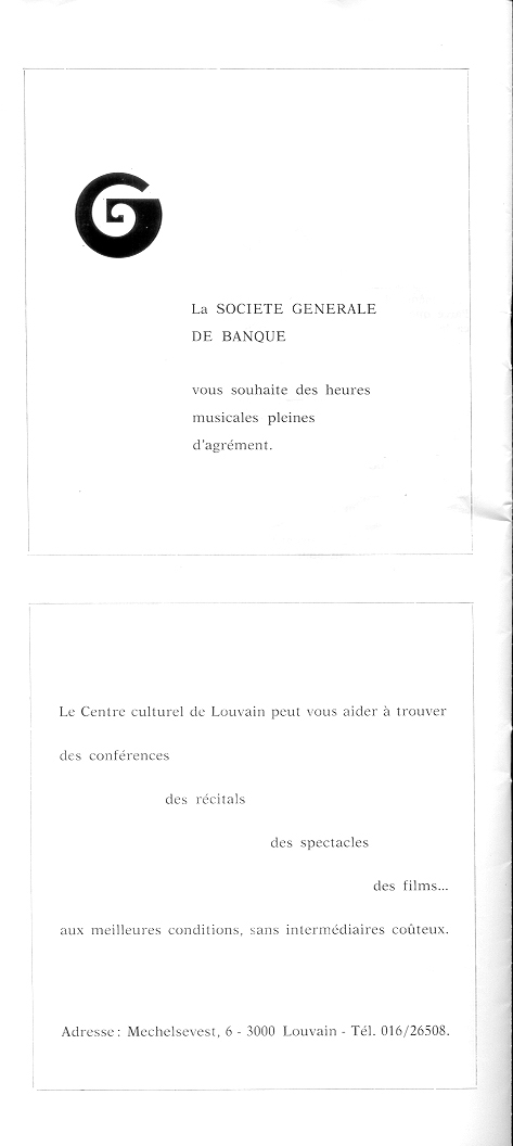 Tournée organisée par le Centre Culturel de Louvain, sous le patronage de Coca-Cola.