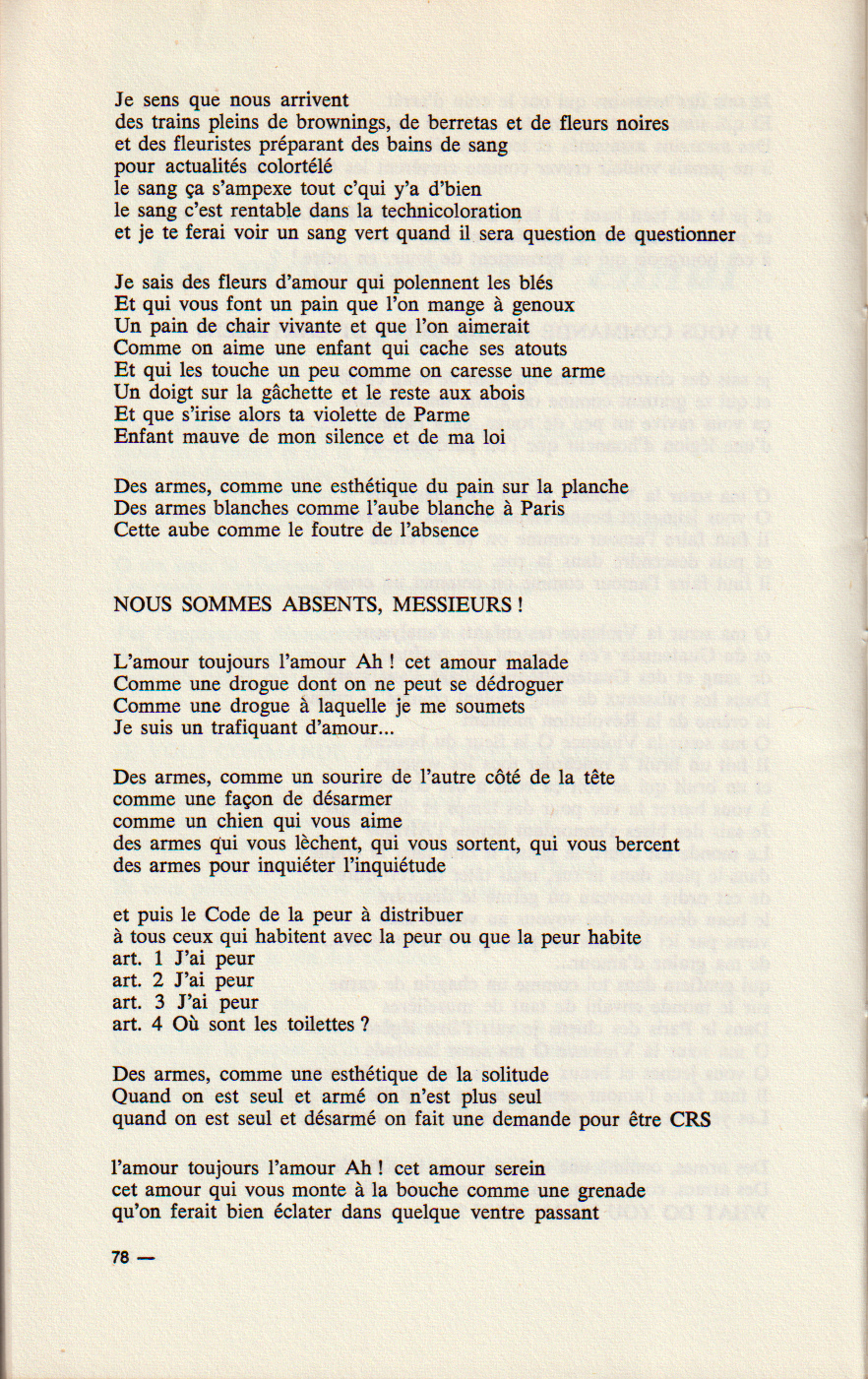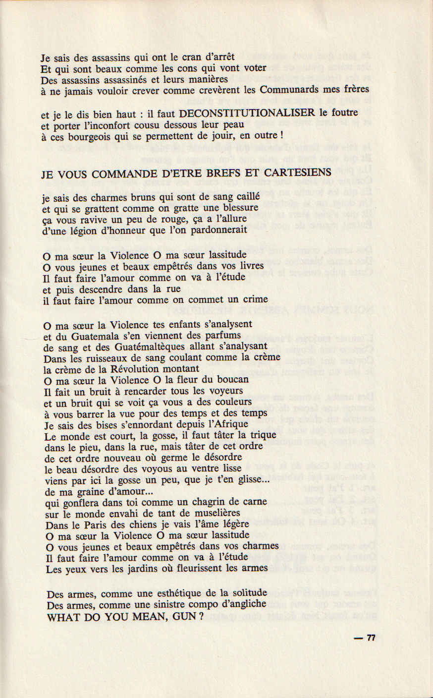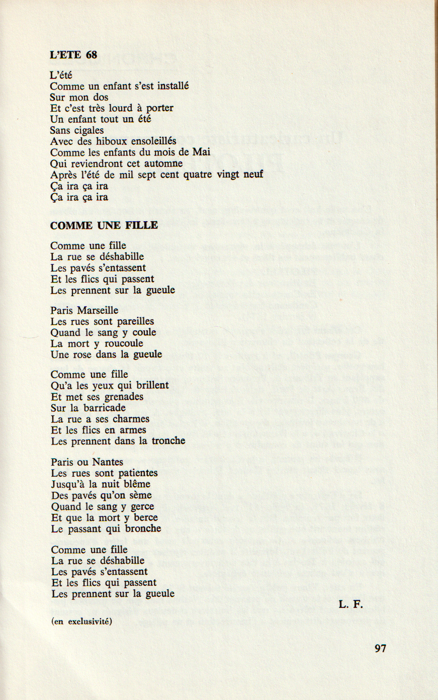 Dans La Rue n° 12, daté du 4ème trimestre, est publié le poème La violence et l'ennui.