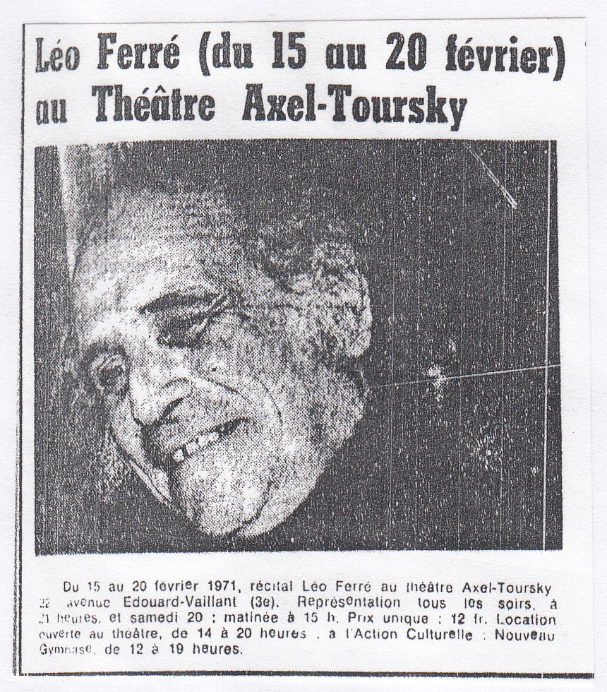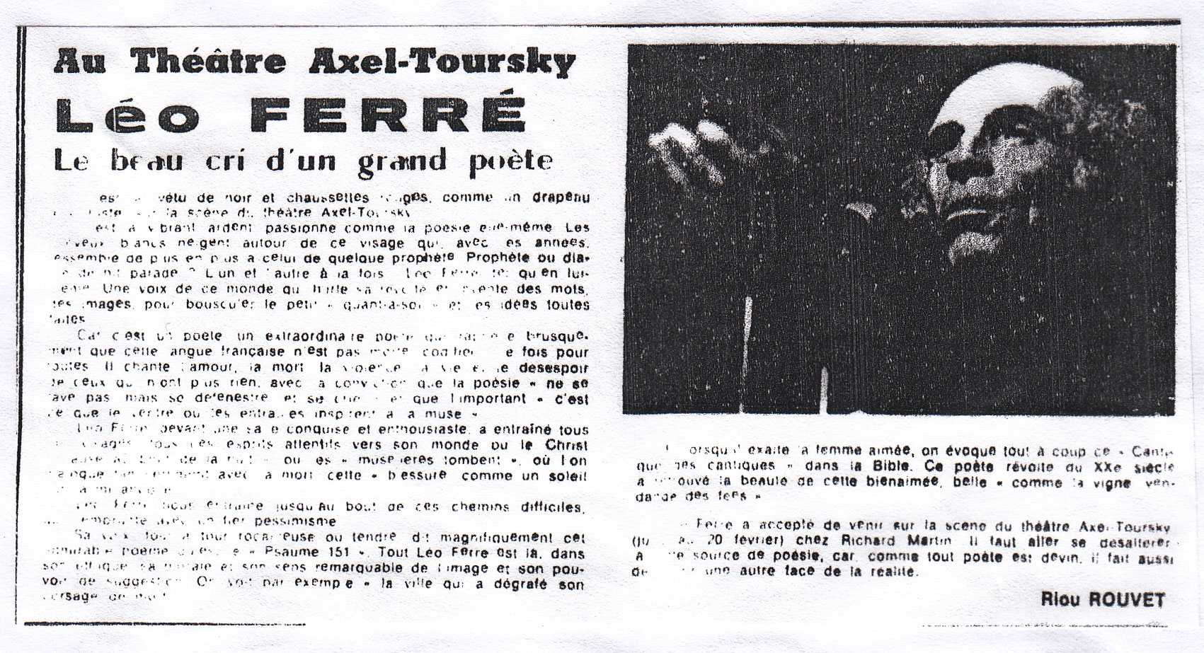 • Au Théâtre Axel Toursky - Léo Ferré - Le beau cri d'un grand poète