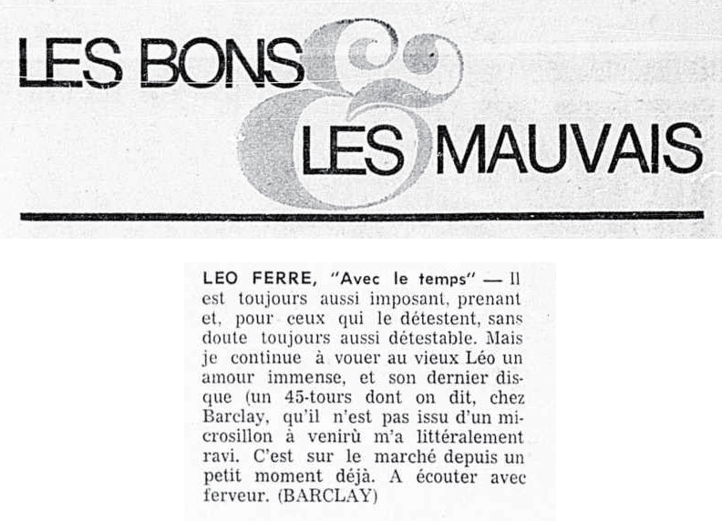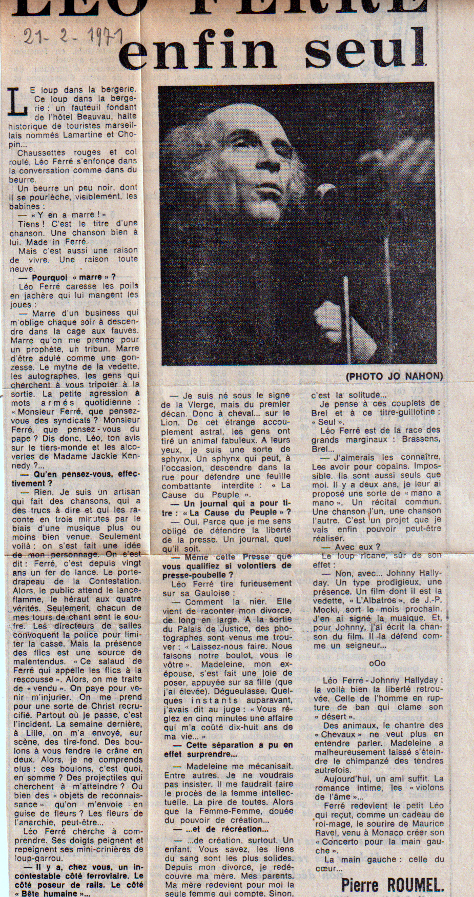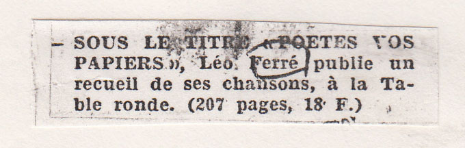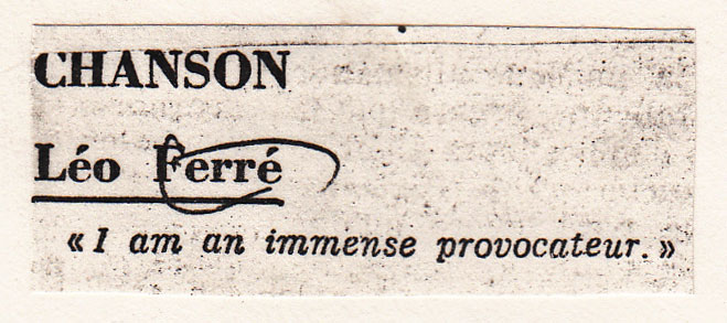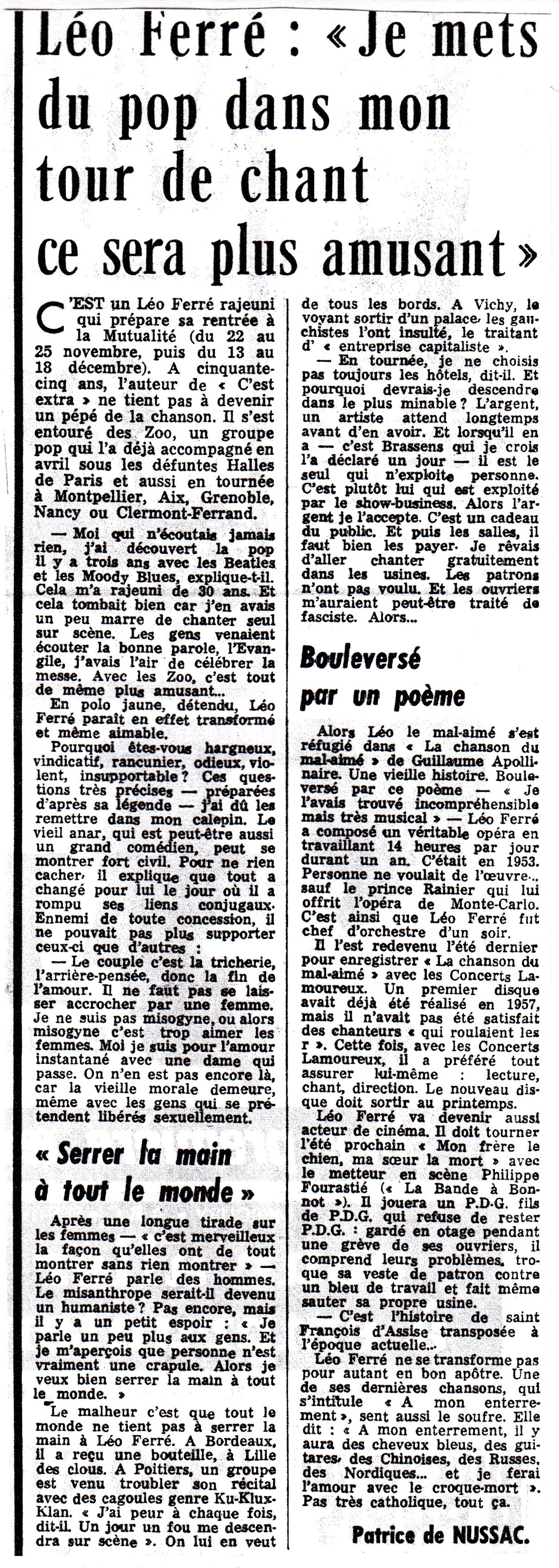 • Léo Ferré : "Je mets du pop dans mon tour de chant ce sera plus amusant"