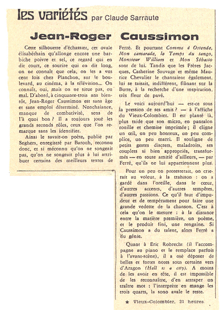 Résumé : .../... - DOCUMENT : .../... - Monsieur William (1961) de J.R. Caussimon, musique de Léo Ferré