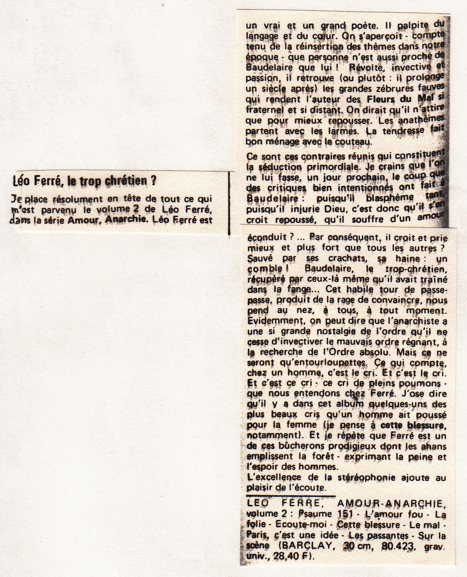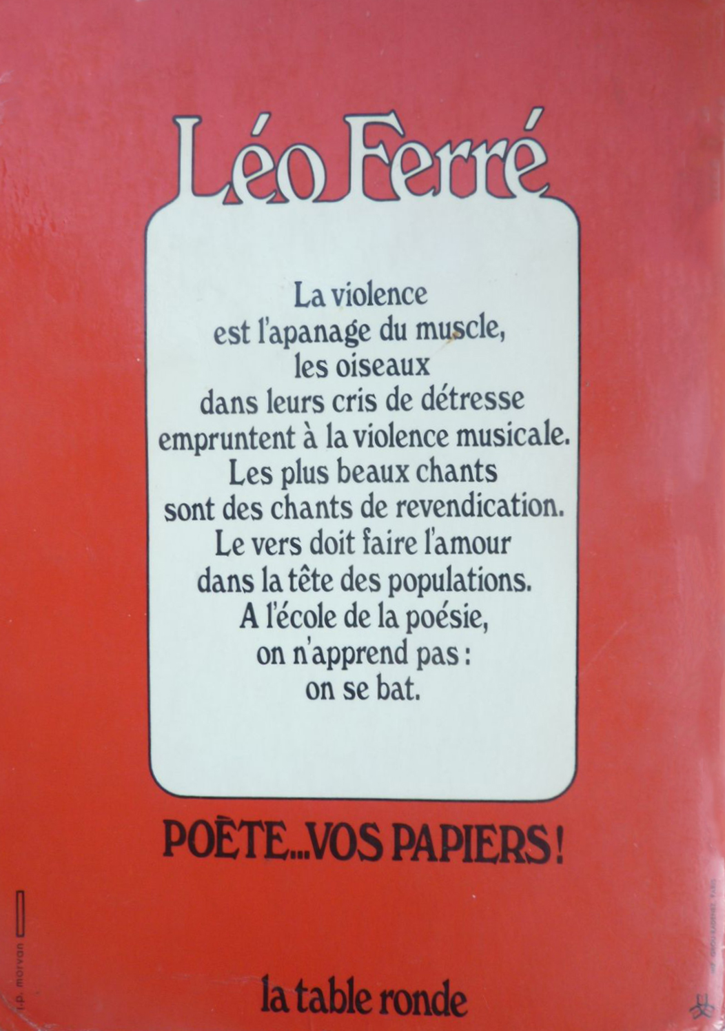 Résumé : Claude Nougaro .../... Il parle de Léo Ferréde sa violence, en comparant leurs deux chansons sur le mois de mai. .../...
