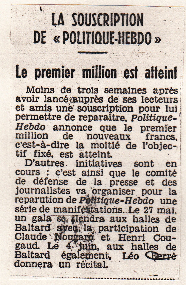 Le journal L'Idiot international dans son numéro 15, daté mars-avril 1971, lance un appel au meurtre sur Léo.