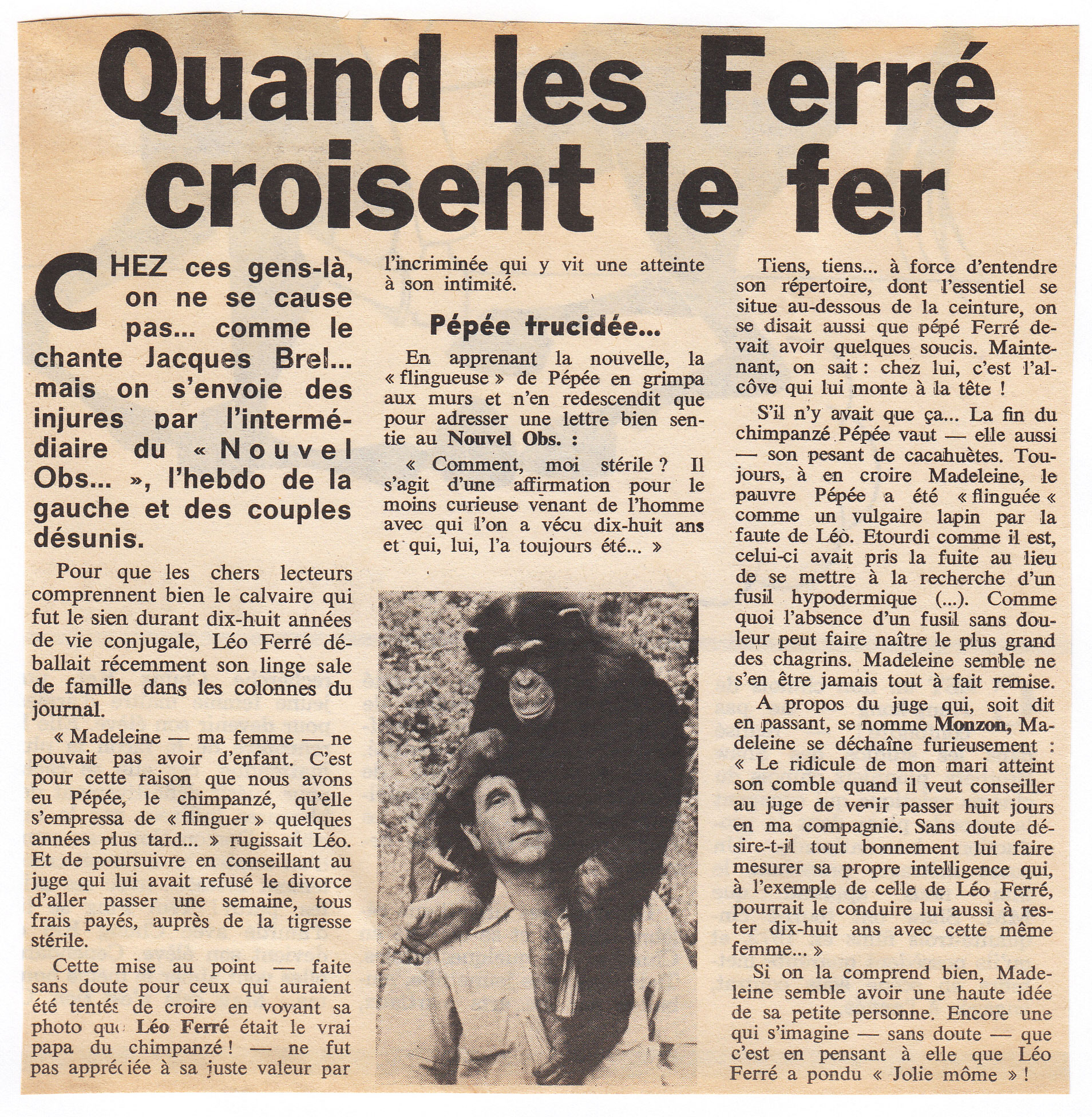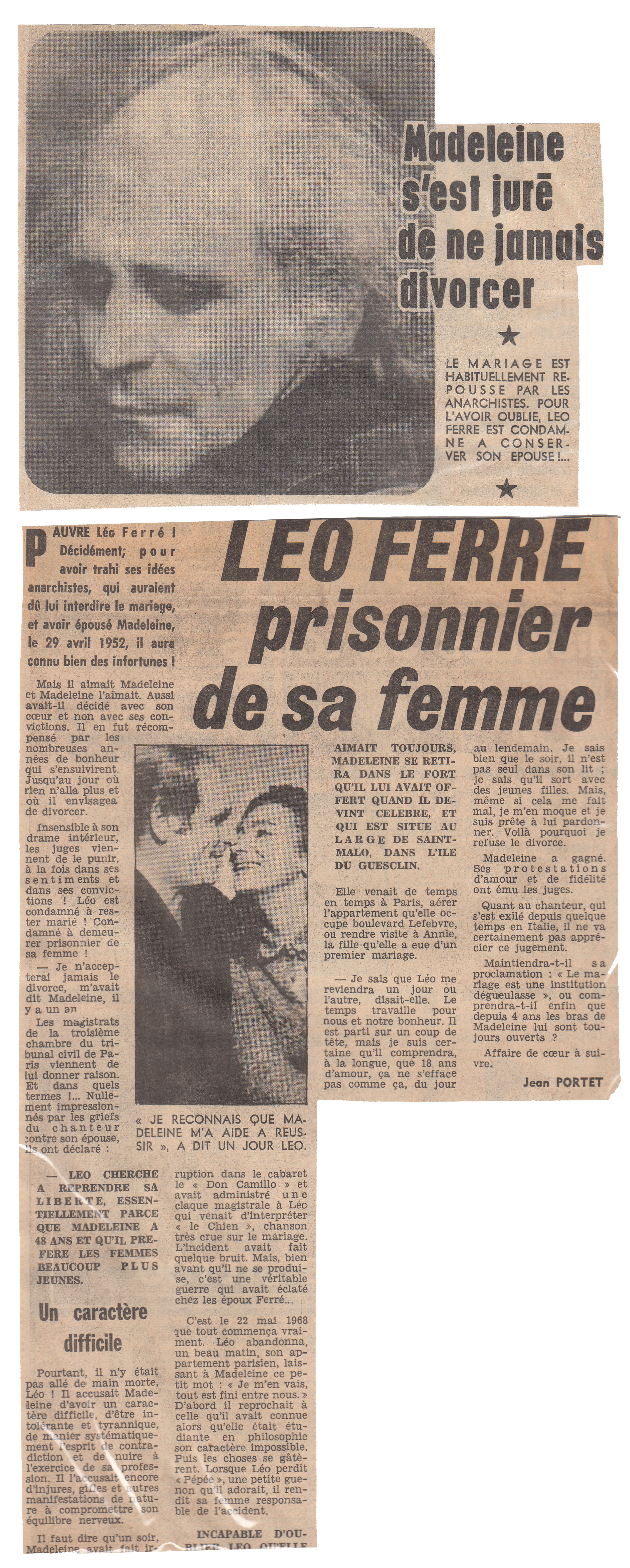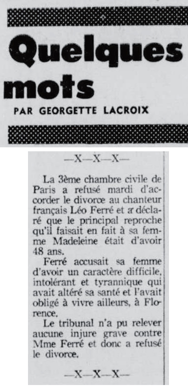 • Madeleine s'est juré de ne jamais divorcer - Léo Ferré prisonnier de sa femme
