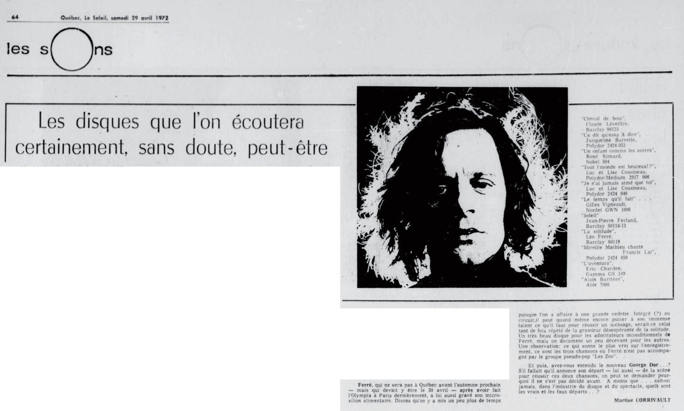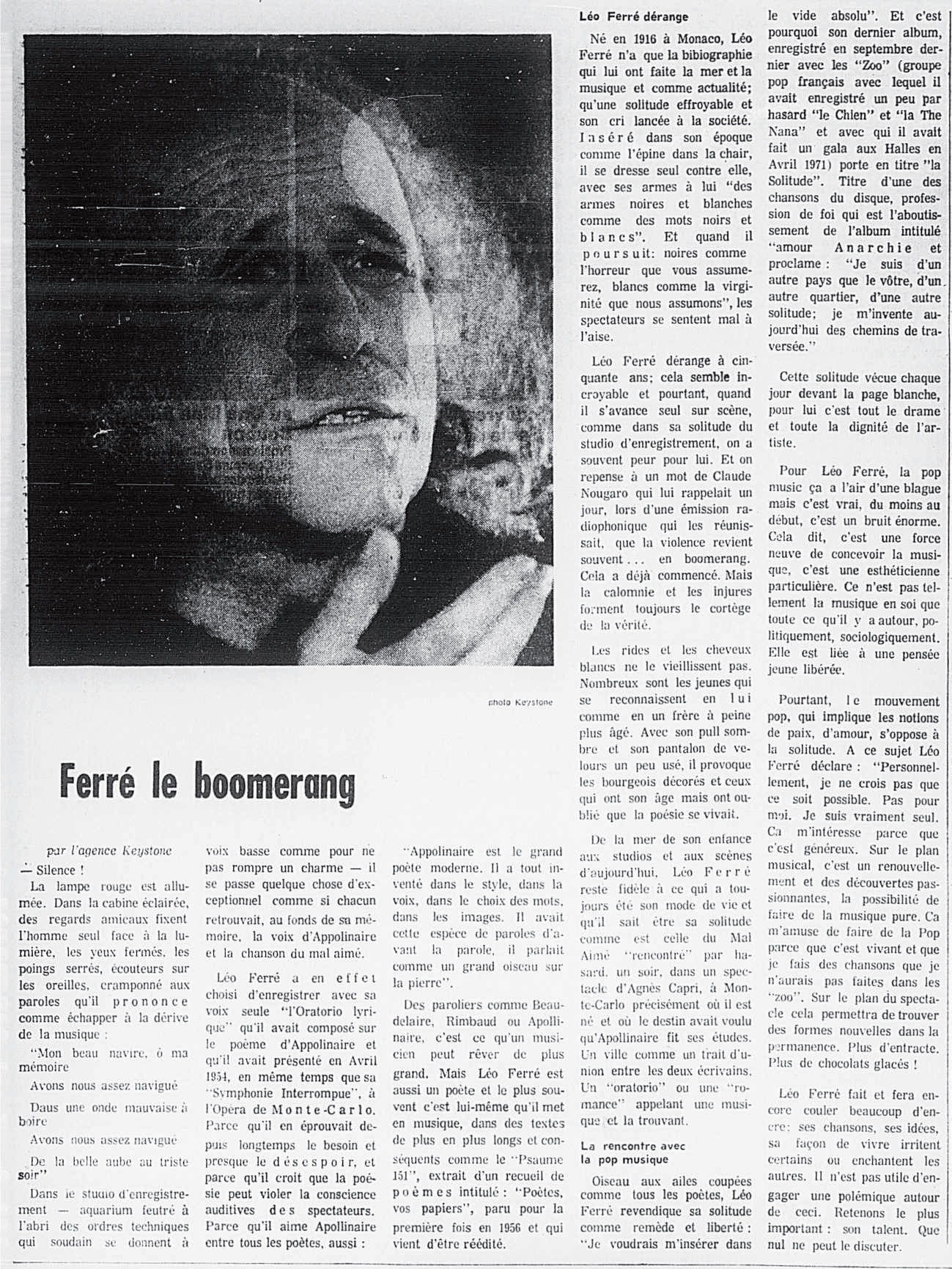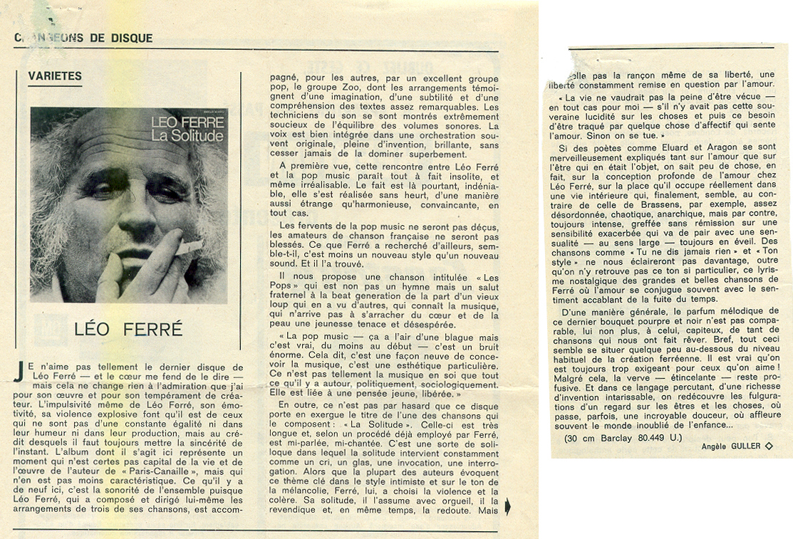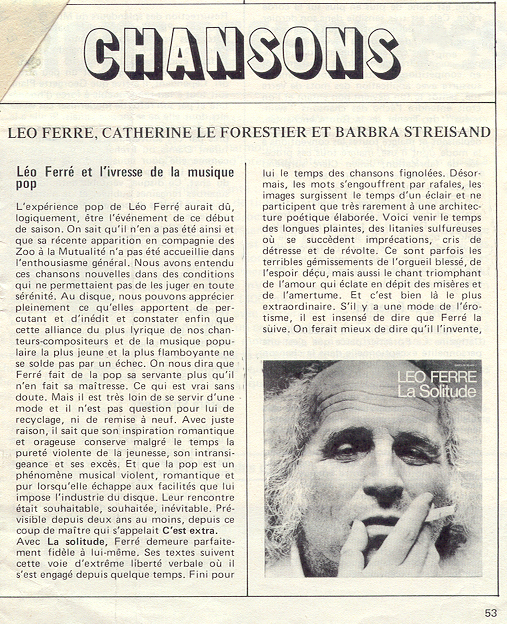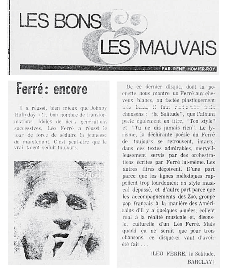 1972 : Live Léo Ferré avec le groupe Zoo interprétant La solitude