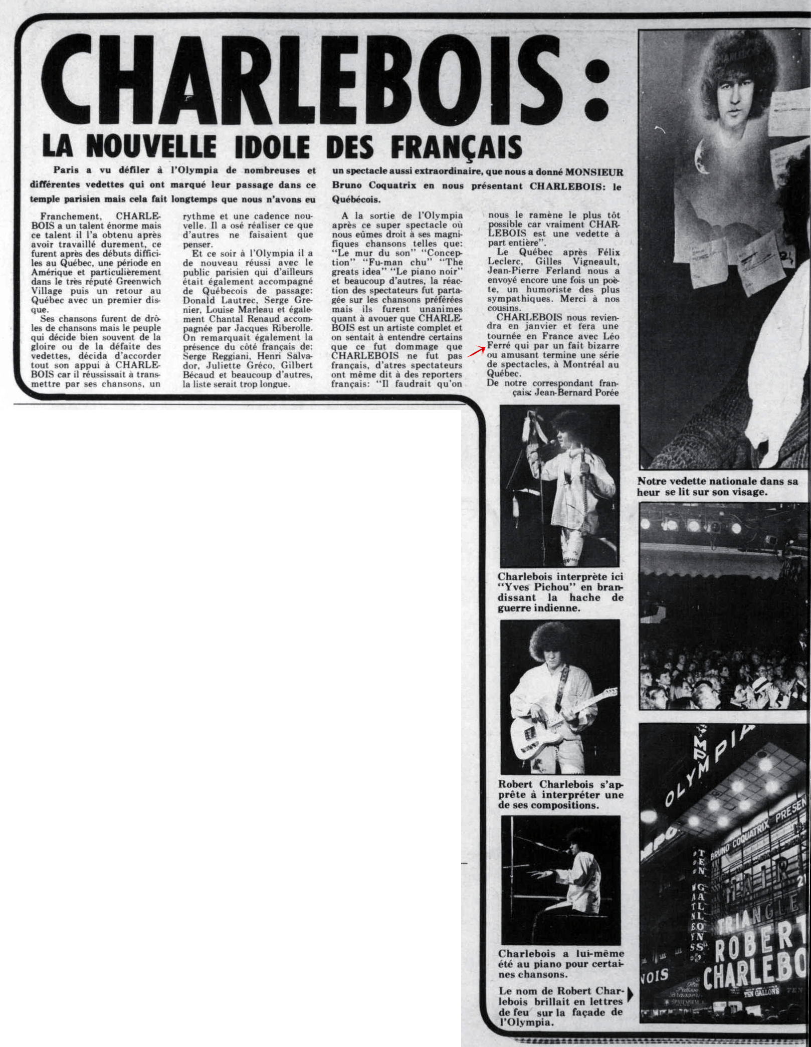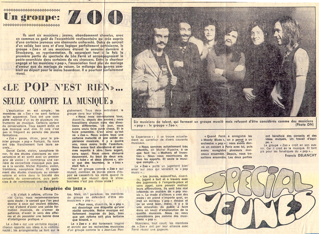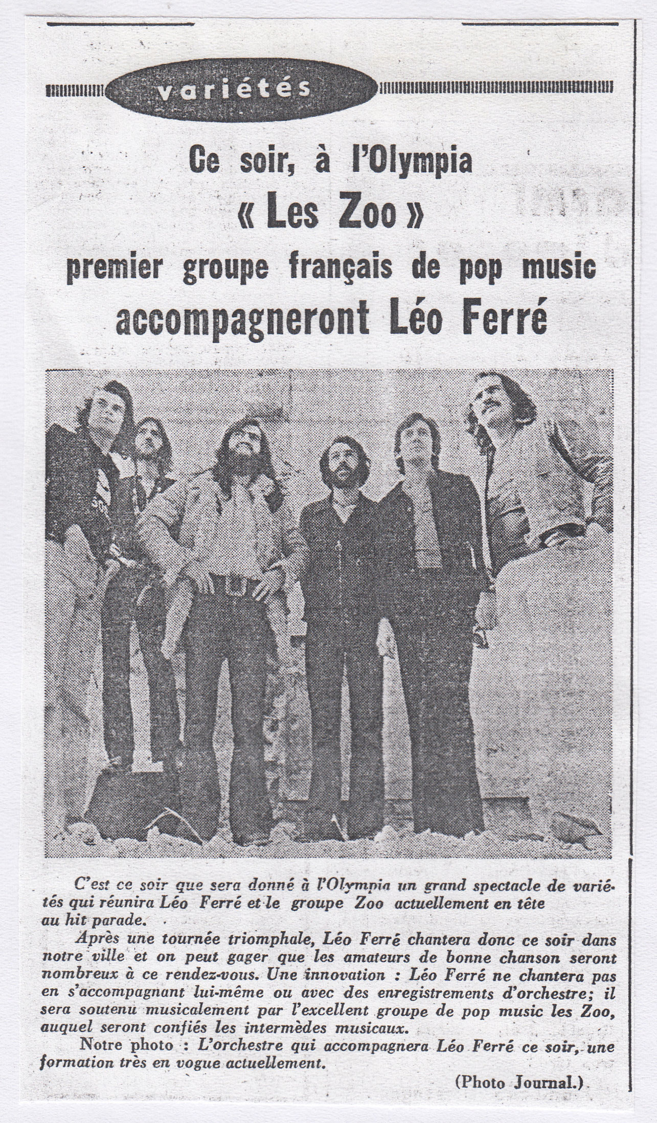 • Ce soir, à l'Olympia "Les Zoo" premier groupe français de pop music accompagneront Léo Ferré