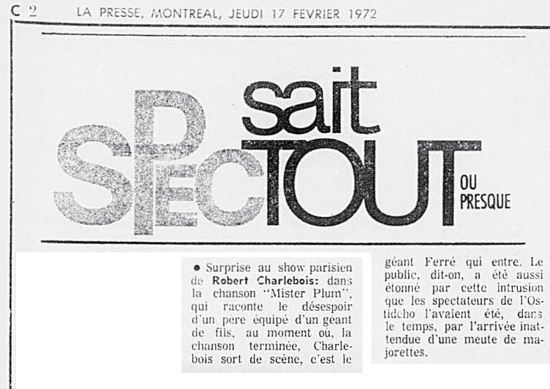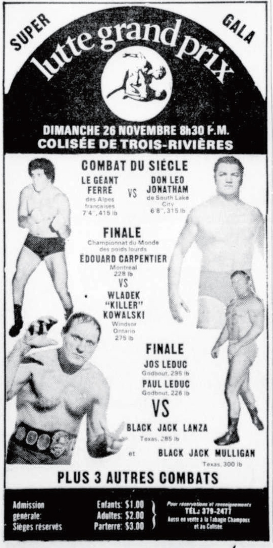 * Le géant Ferré était un catcheur professionnel dont voici une annonce de combat : Le géant Ferré VS Don Léo Jonathan !!!...