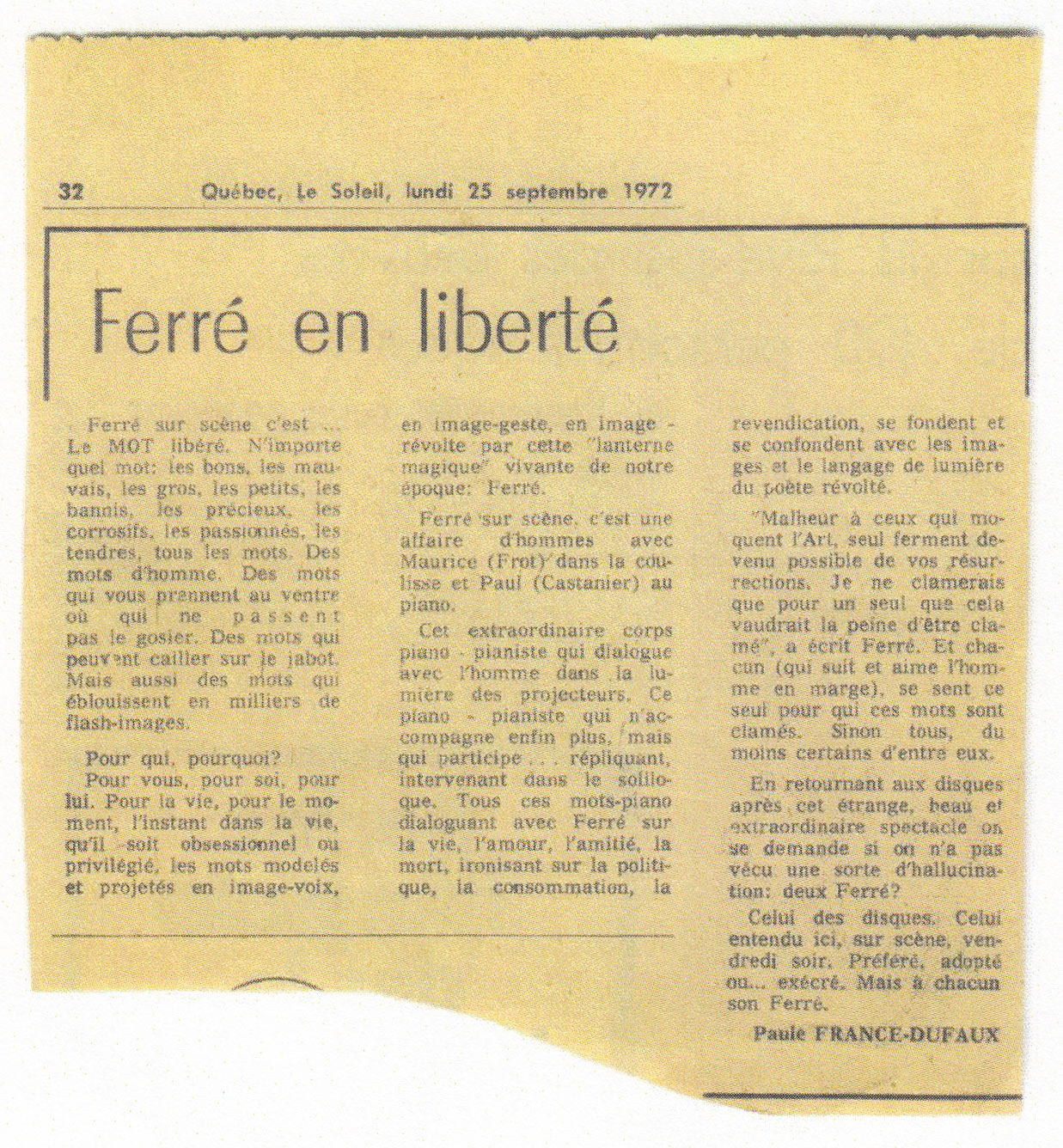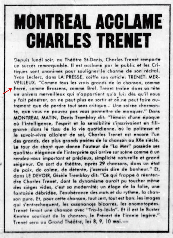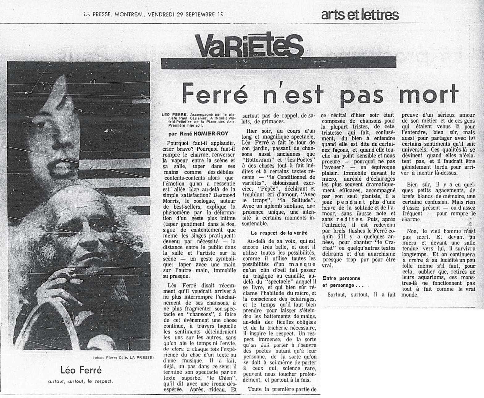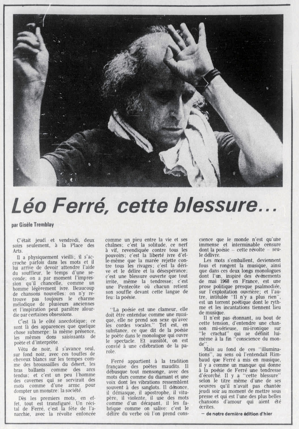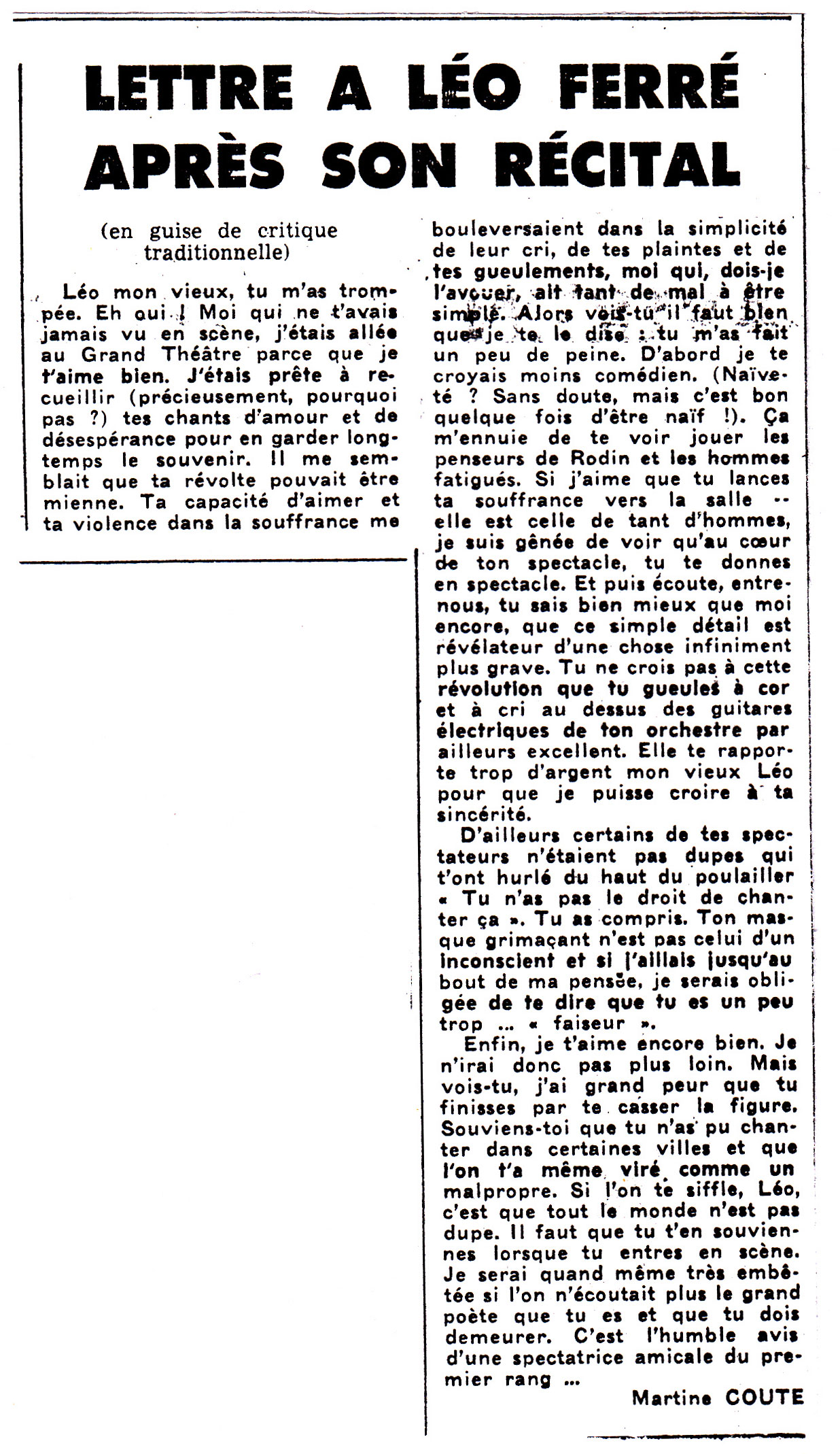 • Lettre à Léo Ferré après son récital